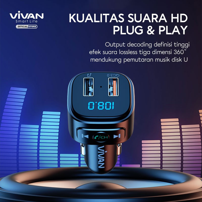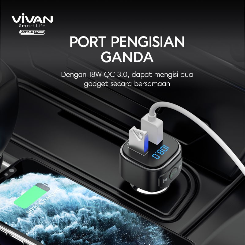 VIVAN VBT01 Car Charger dan Bluetooth Transmintter Bluetooth 5.0 BT5.0