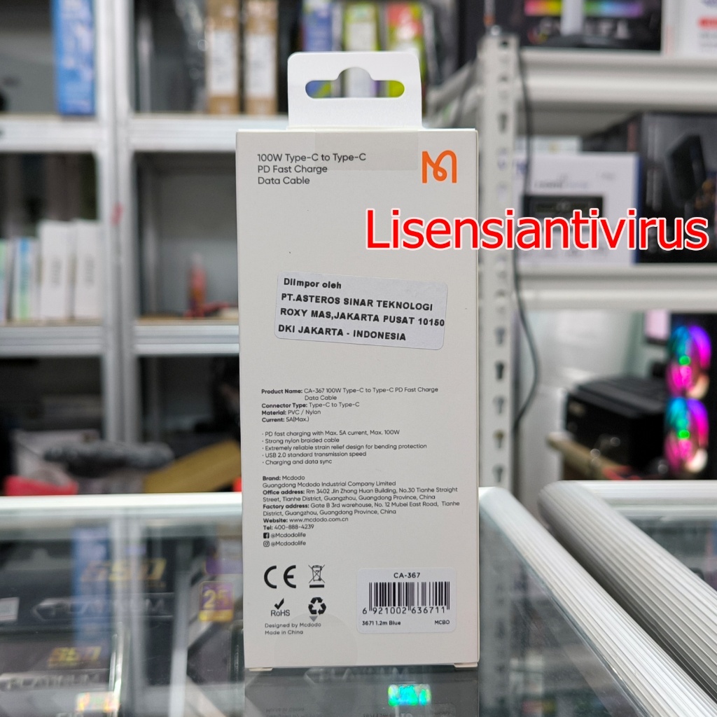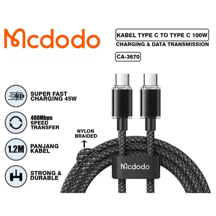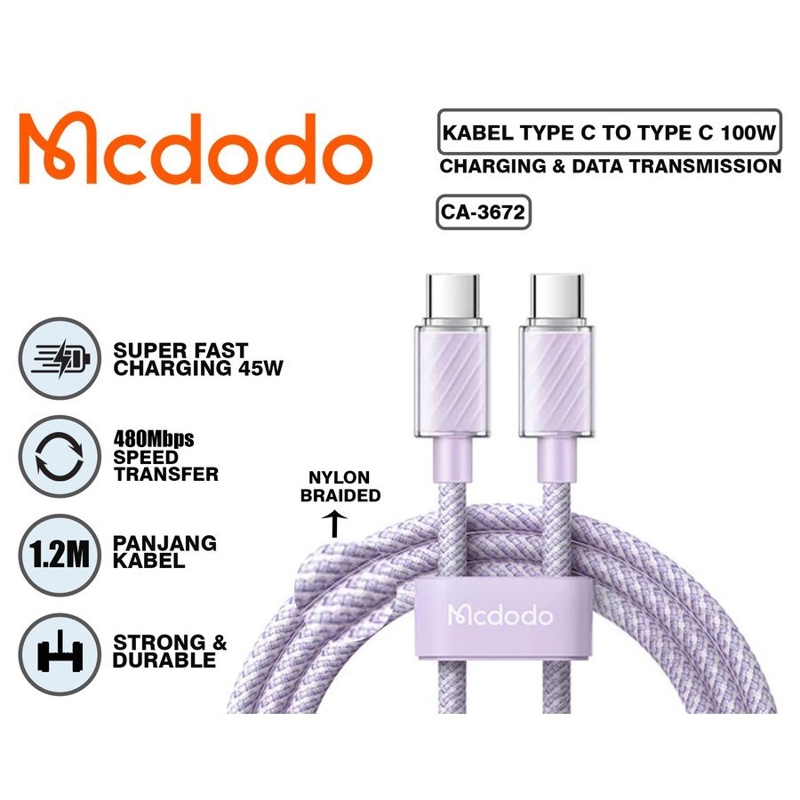 Kabel Data Mcdodo TypeC To TypeC PD Type C Cable Nylon 100W 5A 1.2m CA-367 CA367