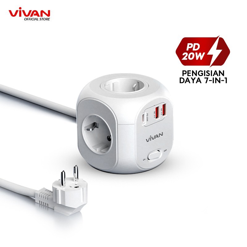 VIVAN Cube Socket VPS-H008A VPS H008A Stop Kontak Colokan Listrik Saklar Adaptor 7 in 1