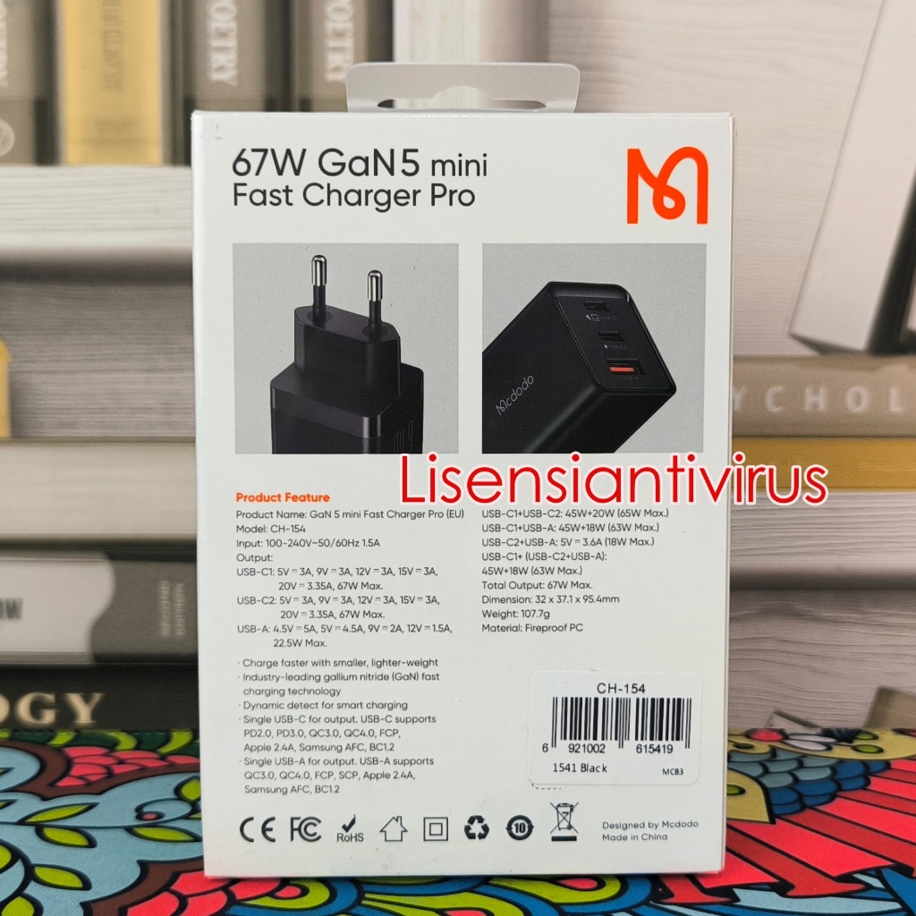 MCDODO Kepala Charger GaN5 PD Power Delivery Fast Charging 67w CH1541