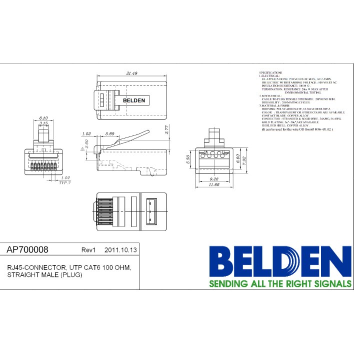 Konektor BELDEN CAT6 RJ45 AP700008 Isi 50Pcs Original Kepala RJ45 Cat 6 Belden