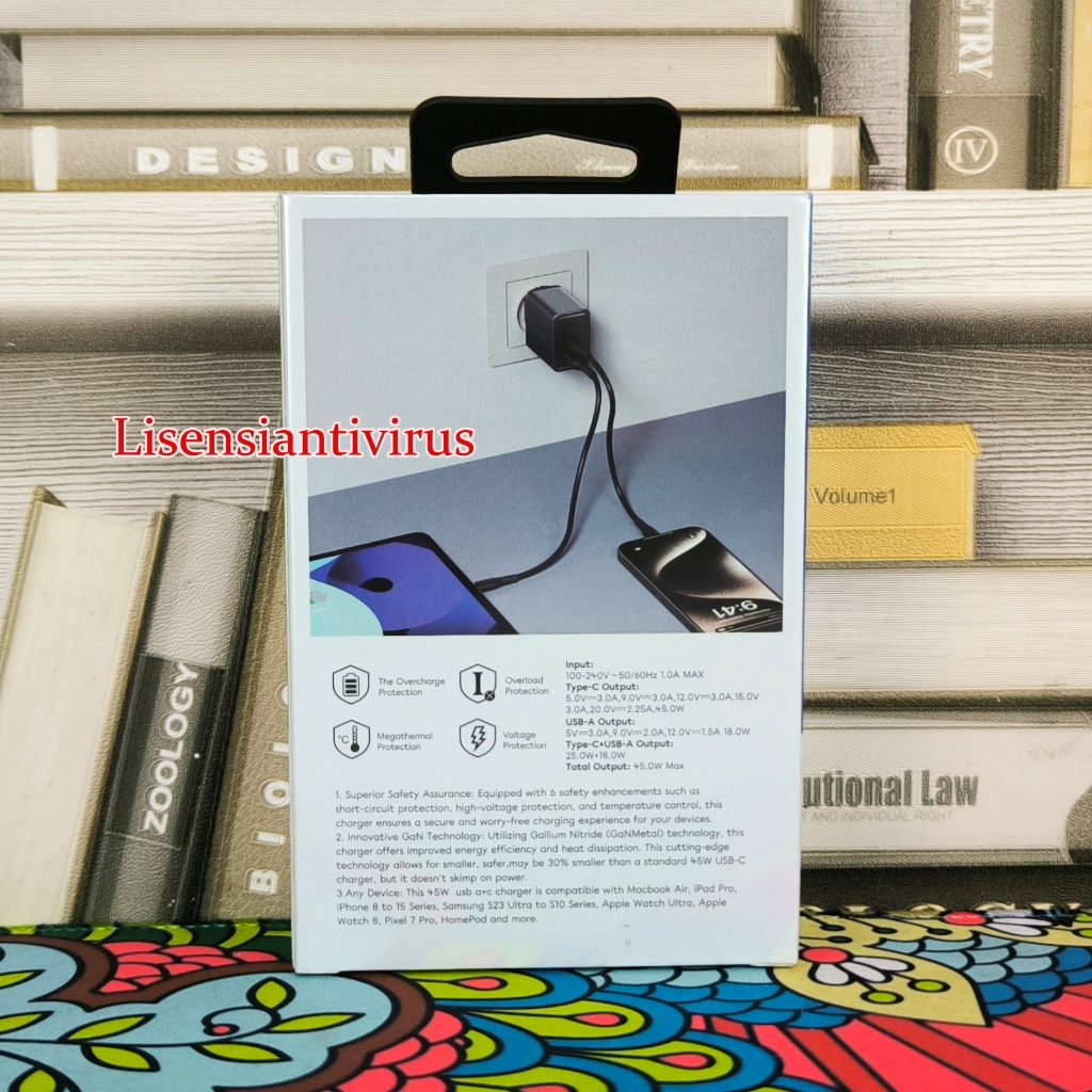 Charger VIVAN GaN08 Fast charging 45W 3A PD QC 3.0 Type C & USB A