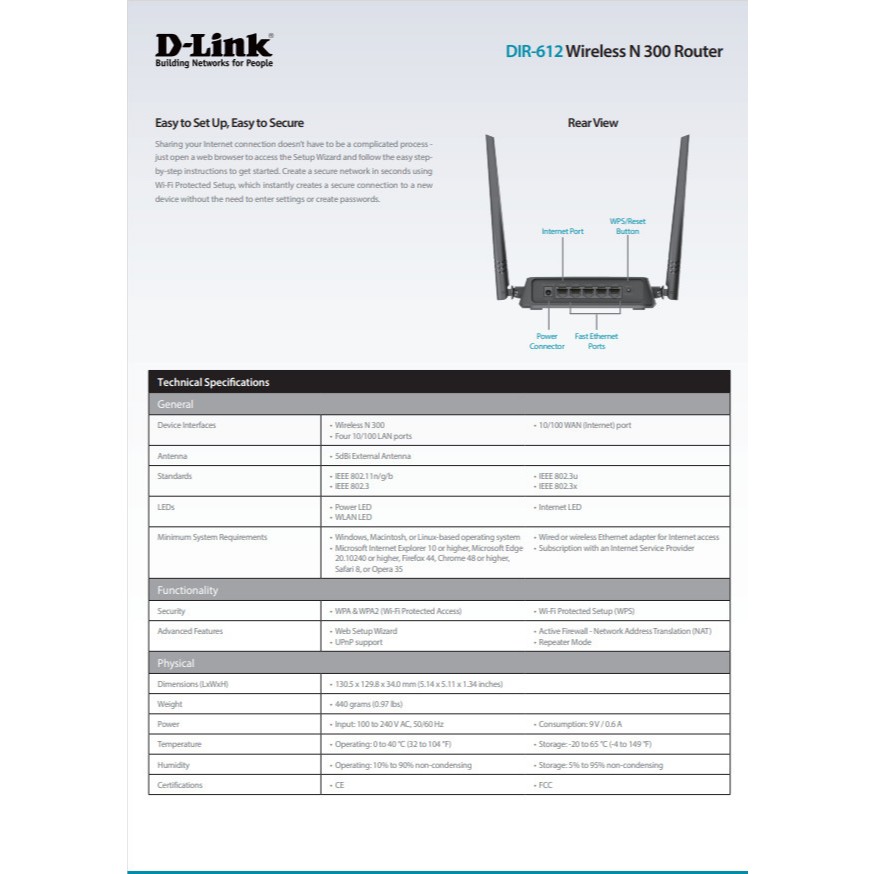 Router DLINK N300 DIR612 300mbps D-Link DIR-612 Wireless N300 Router