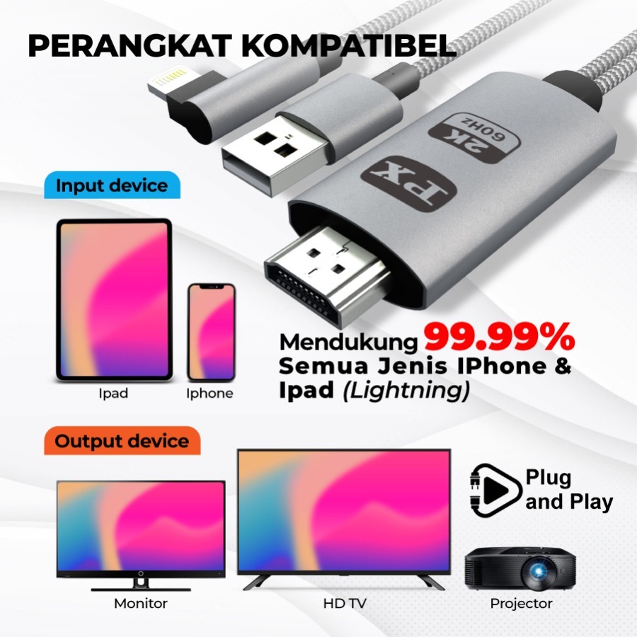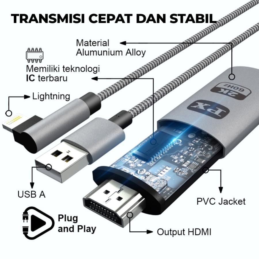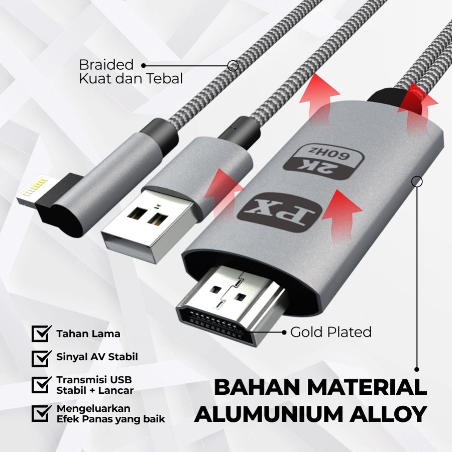 Kabel Mirroring MHL PX HDMI to Lightning iOS Ipad Iphone Converter ke TV PX MHA-120
