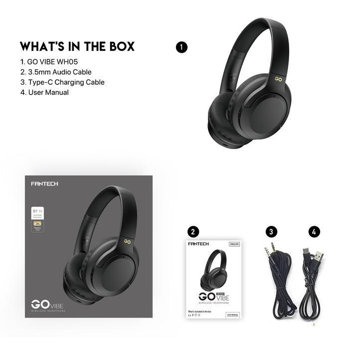 Fantech Headset Headphone GO VIBE WH05 WH-05 Dual Mode Wireless Bluetooth Earphone Microphone Bass