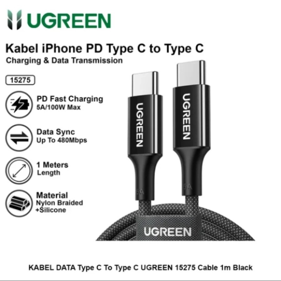 Kabel Data Ugreen Usb C to USB C Fast Charging UGREEN 15275 1M Samsung Xiaomi Oppo