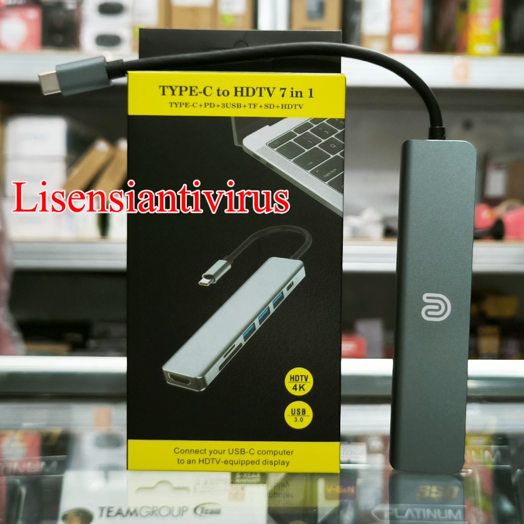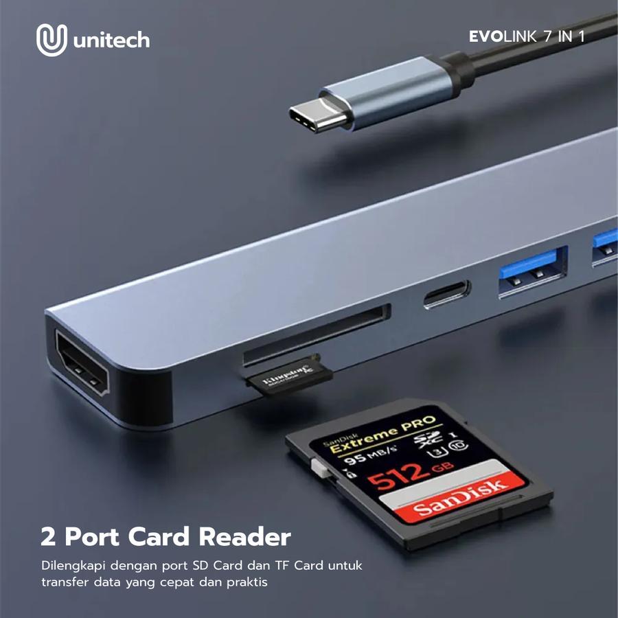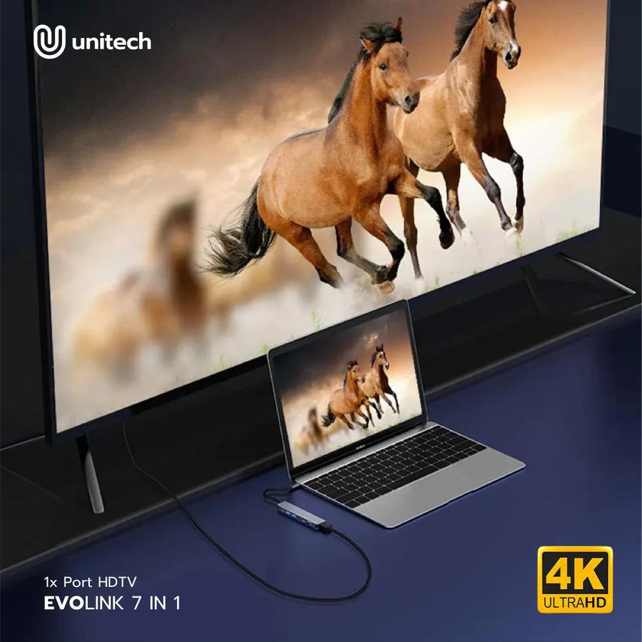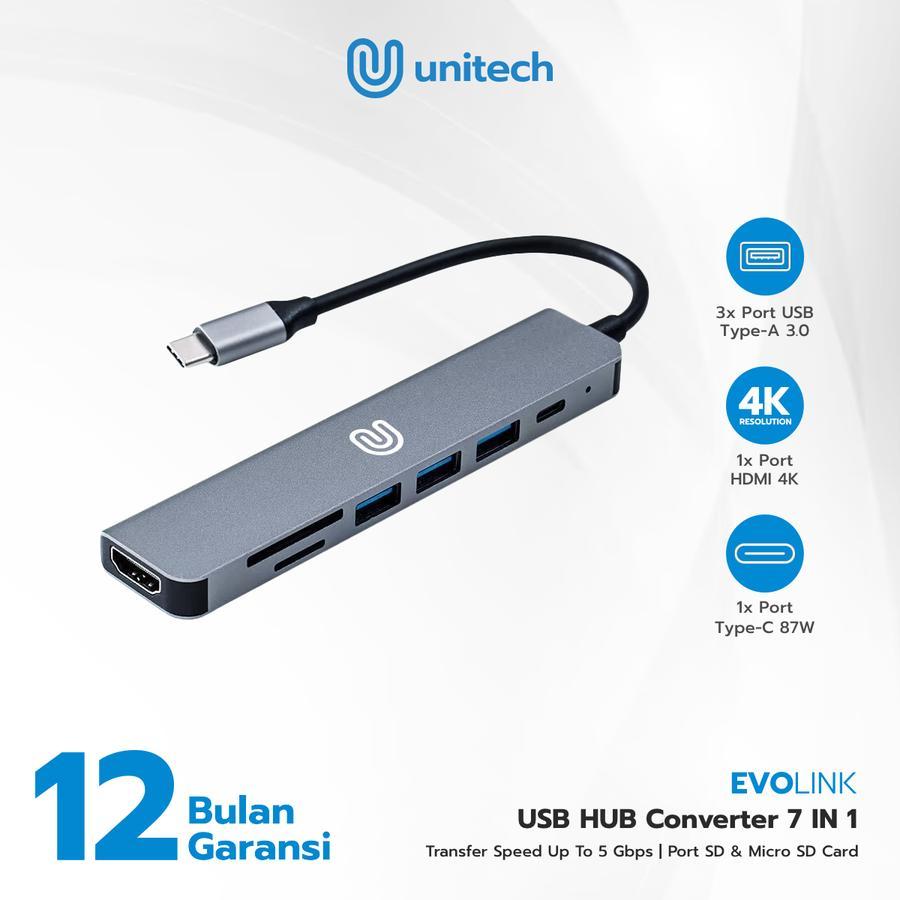 Converter Type C 7in1 USB Hub Unitech Evolink + 3 USB 3.0 + TF + SD + HDMI / HDTV