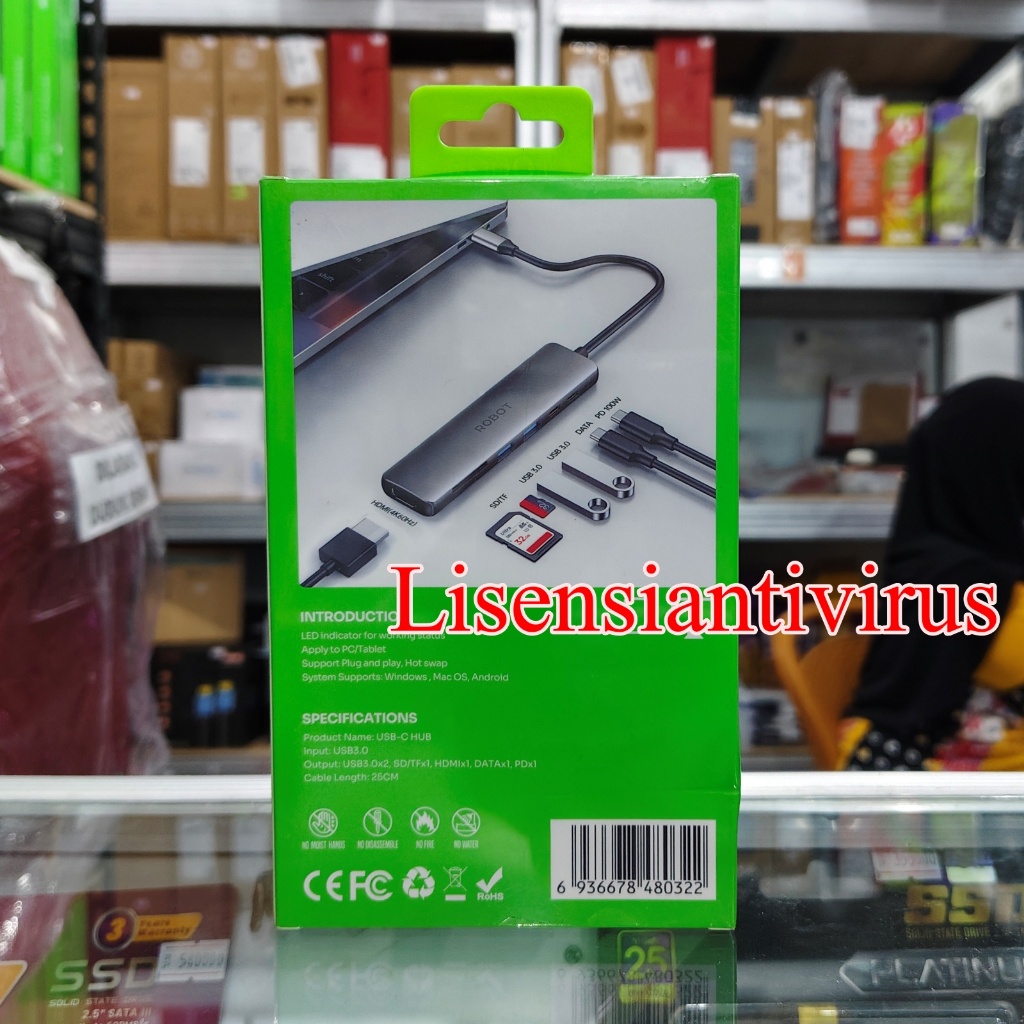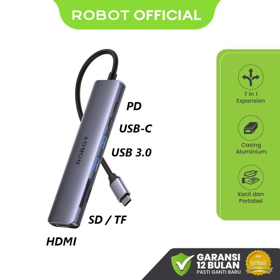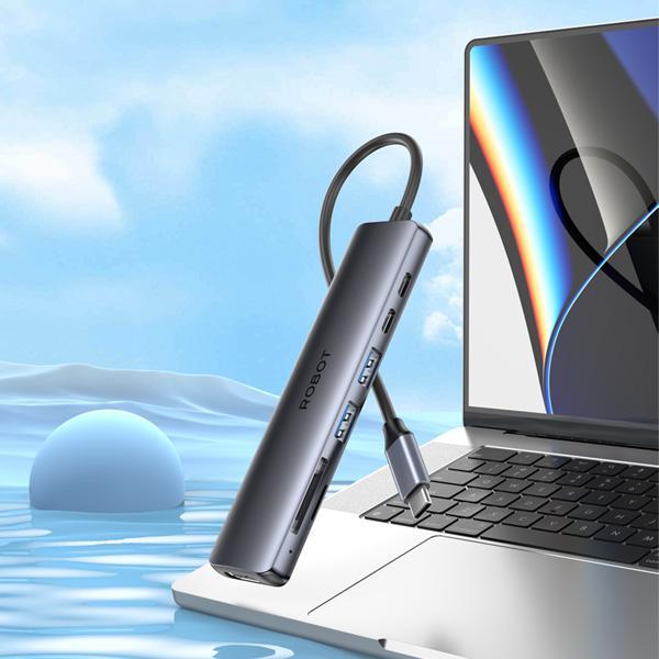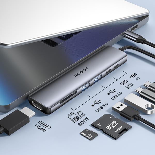 Robot HT367 USB-C Hub Docking Station 7 in 1 PD 100 W 5Gbps USB 3.0 USB Type C HDMI Micro SD Card