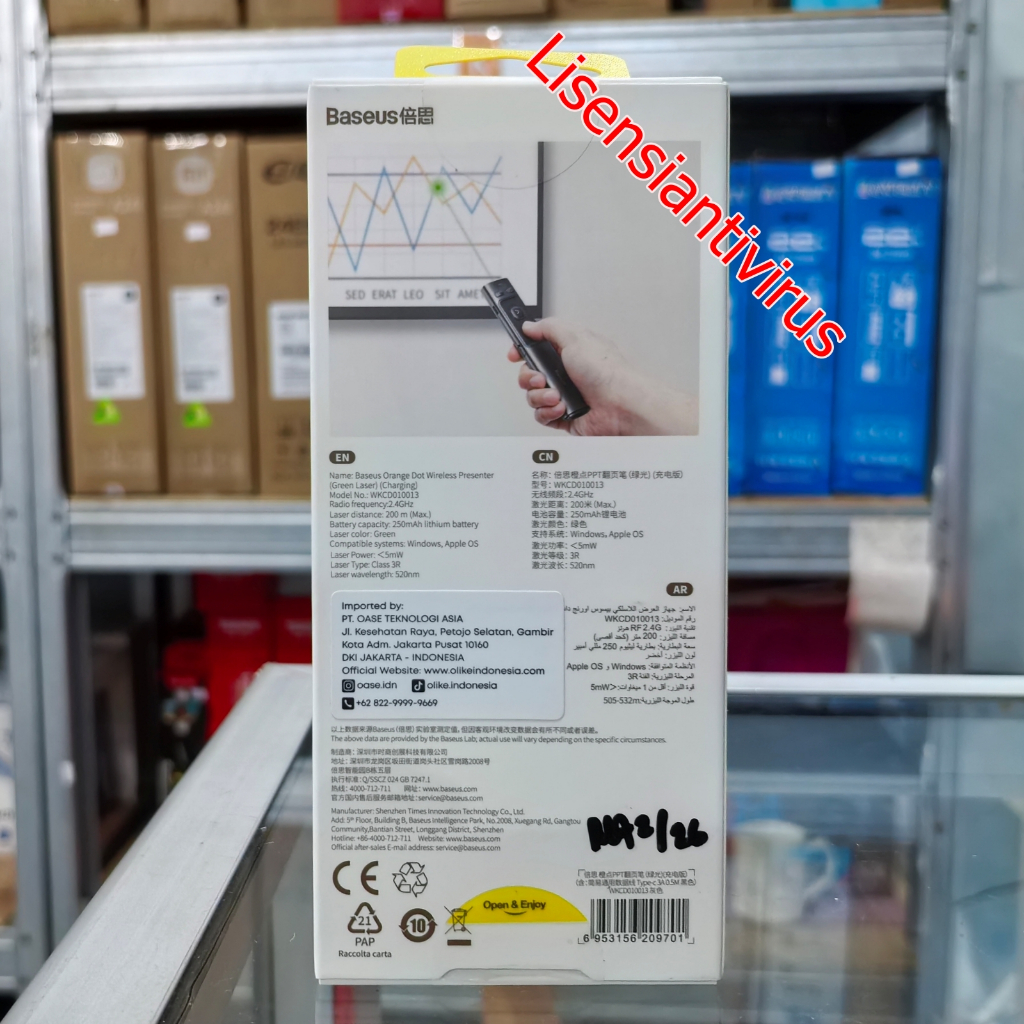 Pointer Baseus Laser Pointer Wireless Presenter Pen Presentasi Orange Dot - Green Laser And Charging