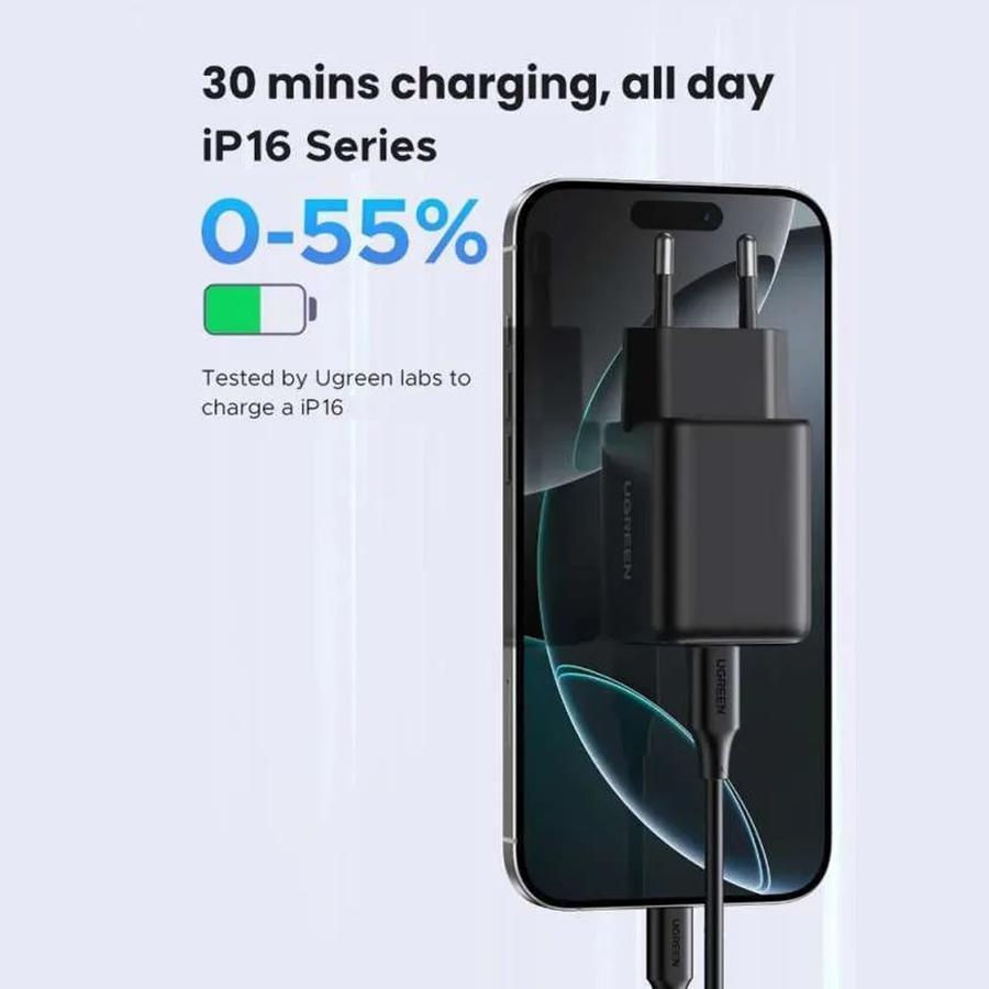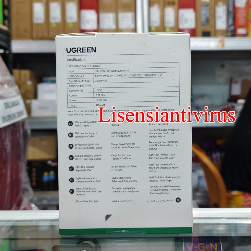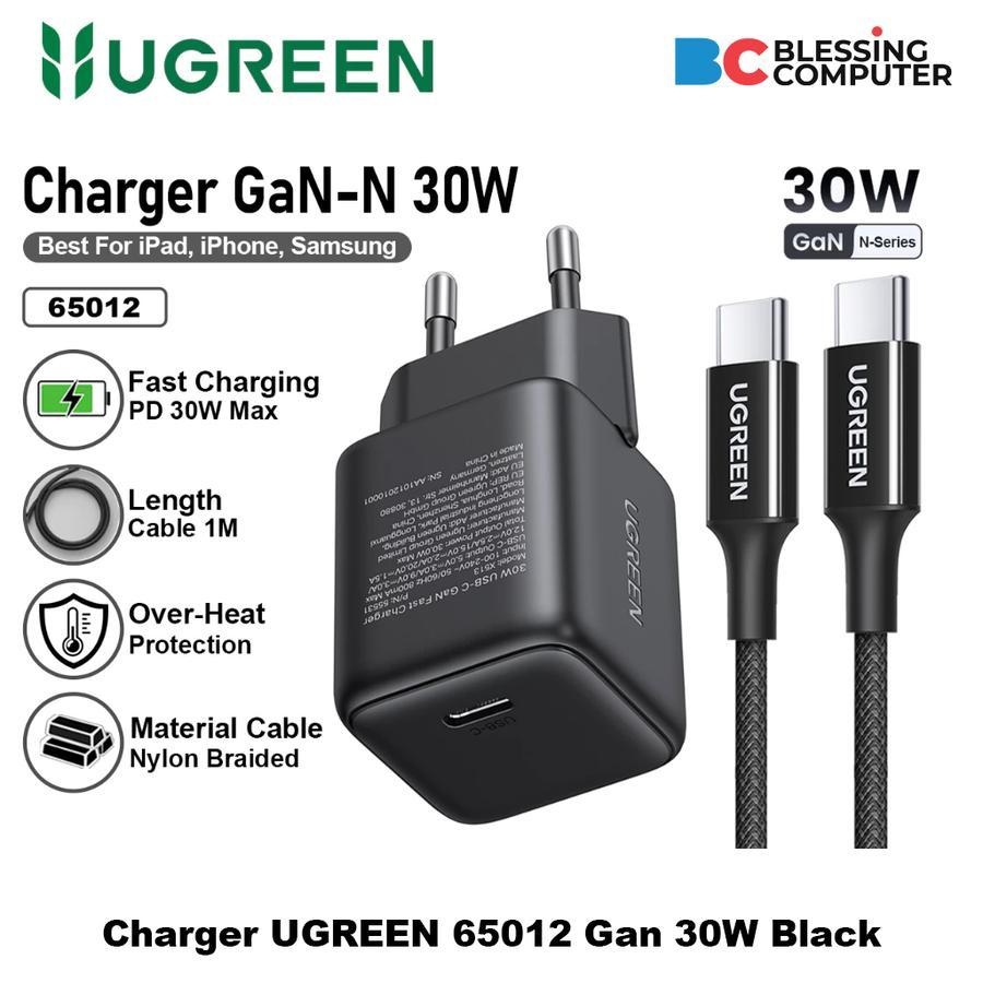 Charger UGREEN 65012 Gan Fast Charging 30W Black include cable TypeC To TypeC 1M