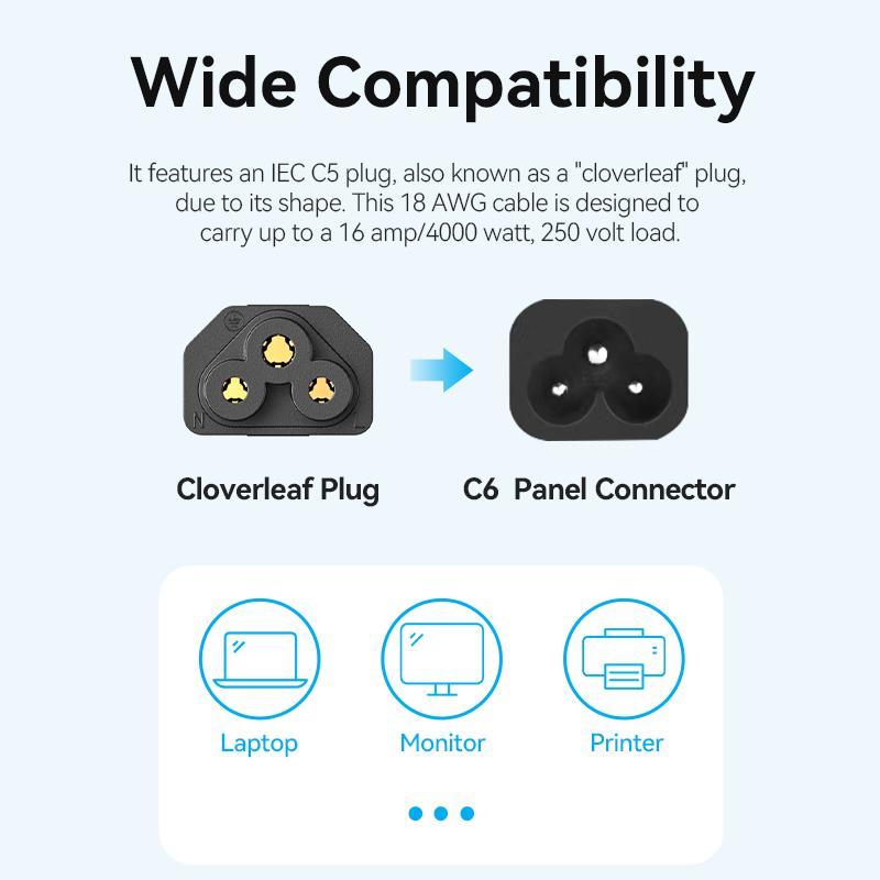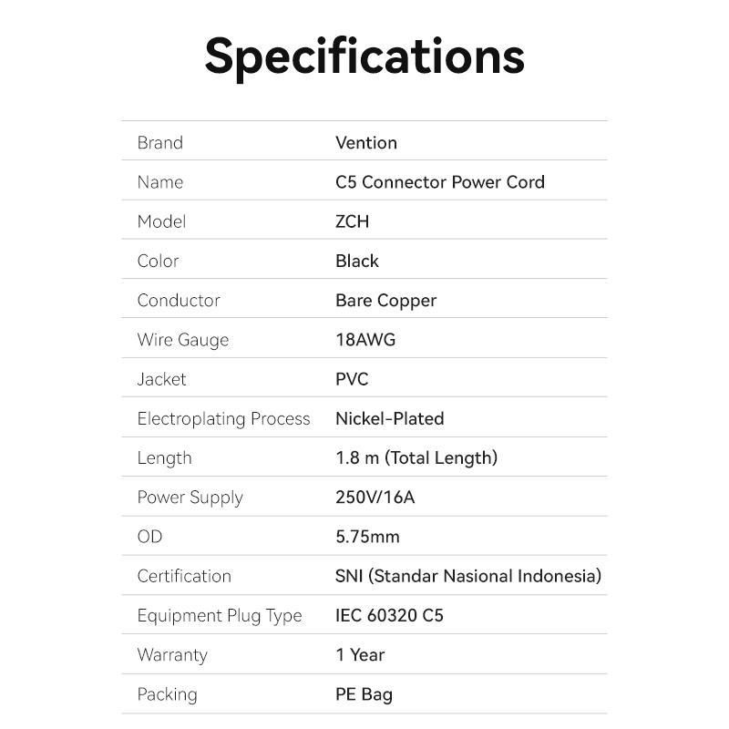 Vention Kabel Power Adaptor Charger C5 Connector 3 Lubang ZCHBAC 1.8 Meter