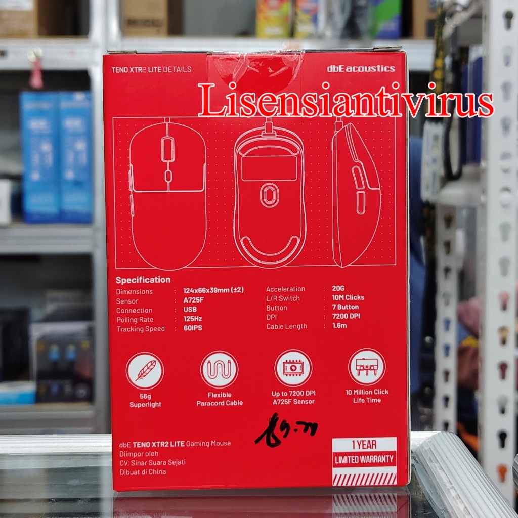 dbE TENO XTR2 Lite Gaming Mouse Super Ringan Superlight Ambidextrous Paracord Cable 7200Dpi