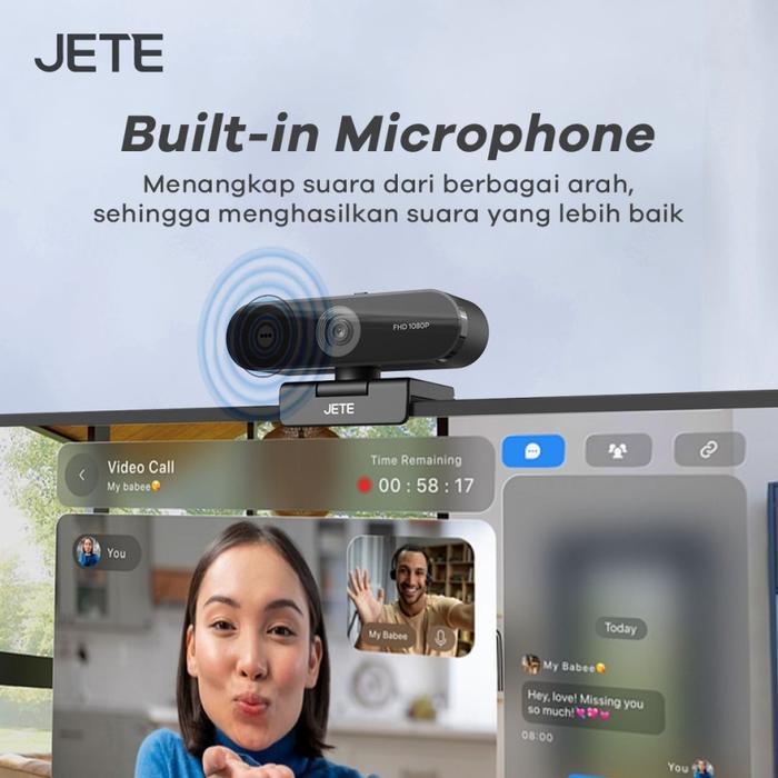 JETE Webcam W9 Full HD 1080p Kamera Laptop Komputer With Mic Privacy Lens Cover For Live Video Meeting FHD Camera Auto Focus