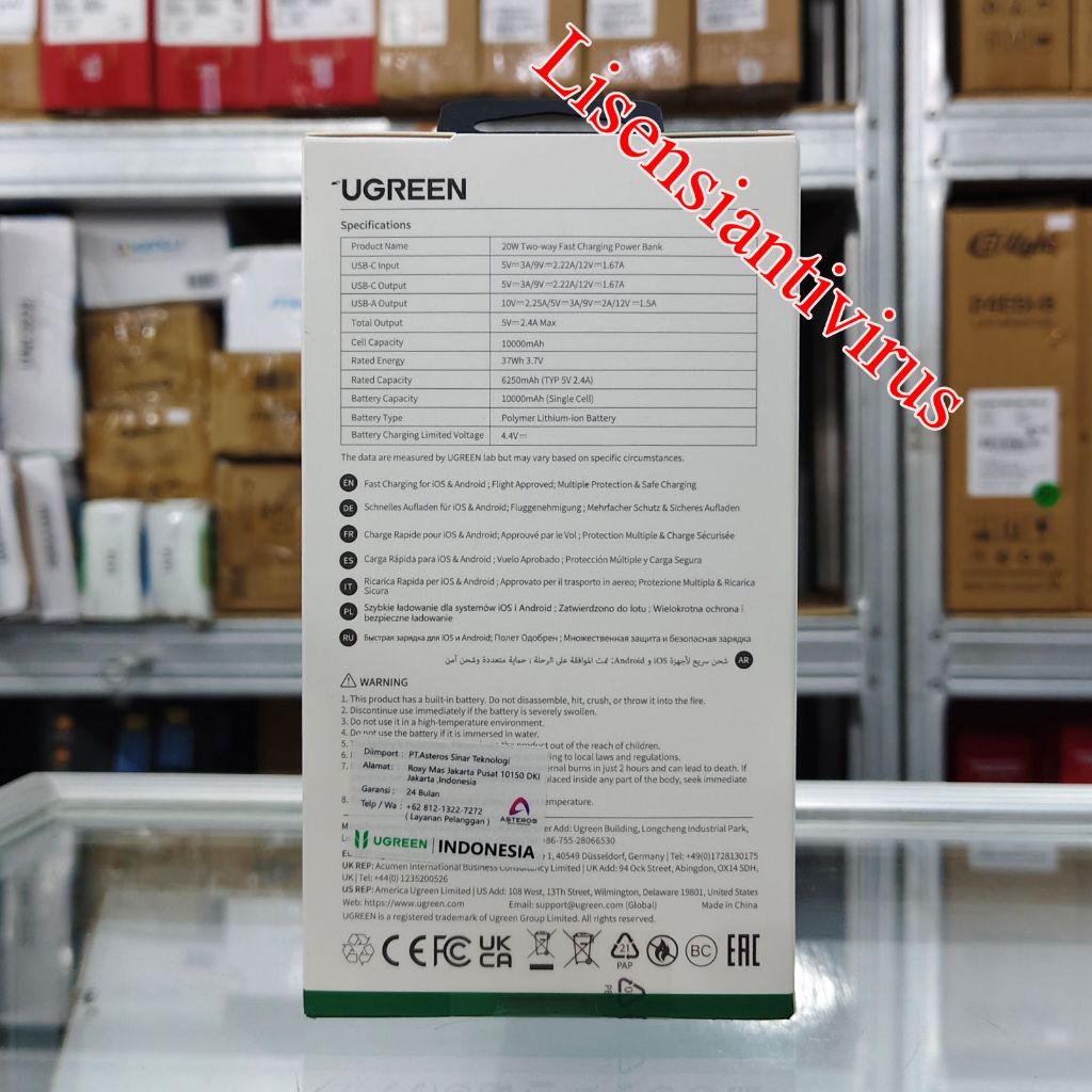 UGREEN Powerbank 10000Mah Dual Port Digital Display Fast Charging 20w - 75131 10.000mAh Slim