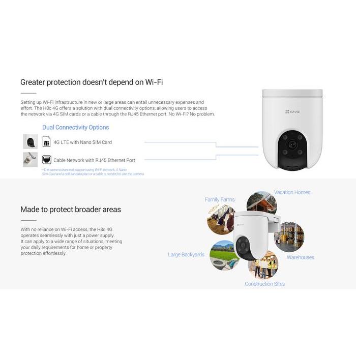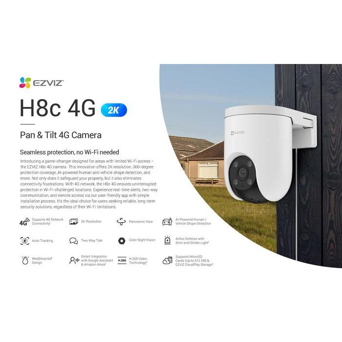 IPCCTV Ezviz H8c 4G 2K 3MP Sim Card Connectivity Pan & Tilt IP Camera CCTV Outdoor Color Night Vision Weatherproof