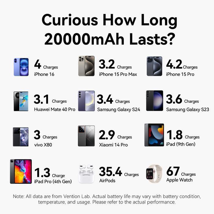 Vention Powerbank 20000mAh 100W USB C 3.0 PD PPS LED Display with Lanyard FKCH0