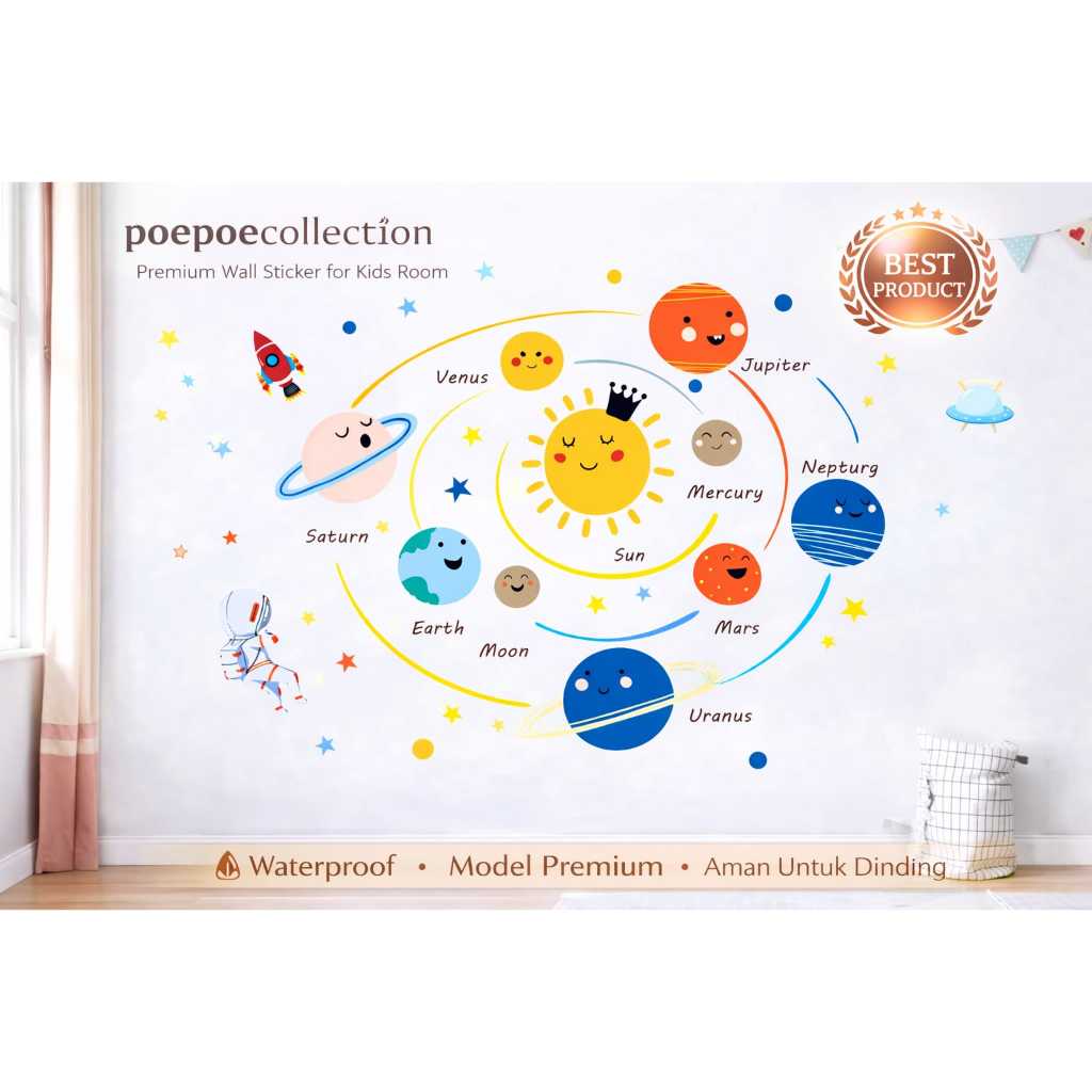 Wall Sticker Dinding Anak Planet Star Antariksa /Hiasan Dinding Kamar Anak Dekorasi Stiker Dinding Kelas Sekolah