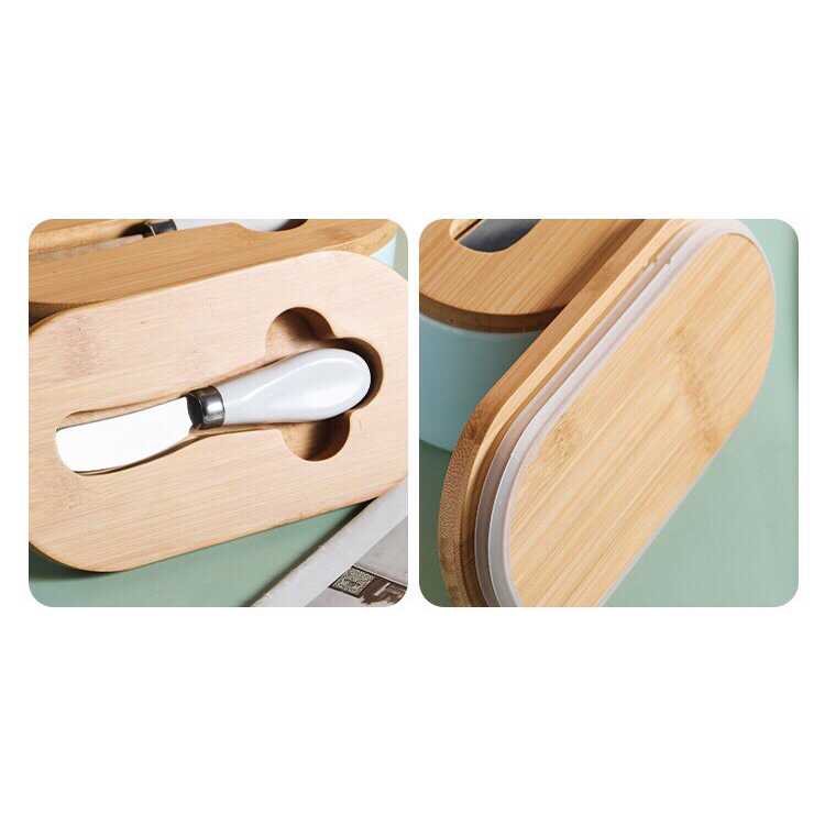 [MS] Tempat Butter Mentega Kotak Penyimpanan Butter Keramik dengan Tutup Kayu
