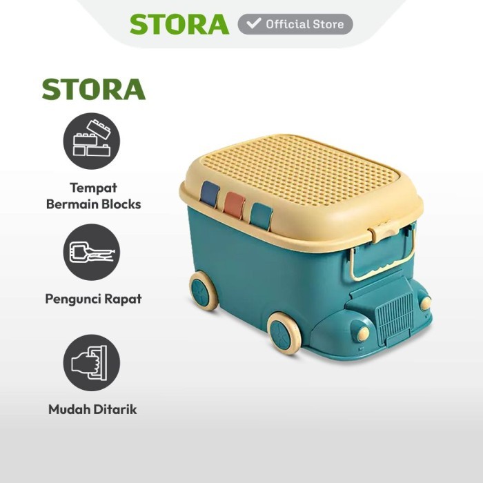 Stora 42.5x31x26 Cm Kotak Penyimpanan Dengan Roda Car - Hijau