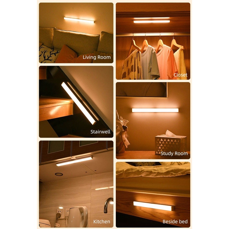 Lampu Sensor LED Gerak Tempel Magnetic Rechargeable Night Light Lampu Baca Dapur Lemari Kamar