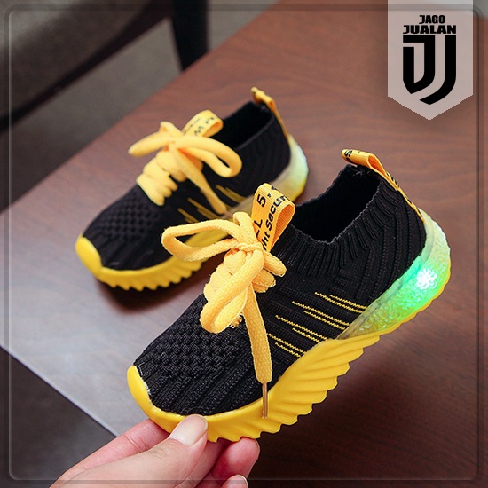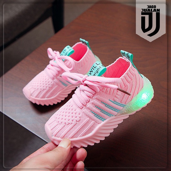 Sepatu Slip On Tali Rajut Anak Balita Lampu LED / Sepatu MENYALA Anak Perempuan Laki Laki usia 1 2 3 4 5 tahun / Sepatu Anak Balita Sneakers Sol MENYALA / Sepatu Kets Casual Anak Cowok Cewek Fashion Sport / Sepatu Anak Wanita Pria Bahan Rajut Murah Trendy