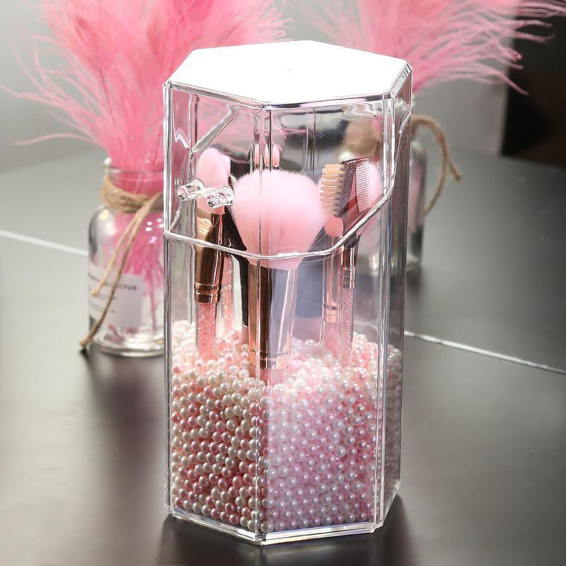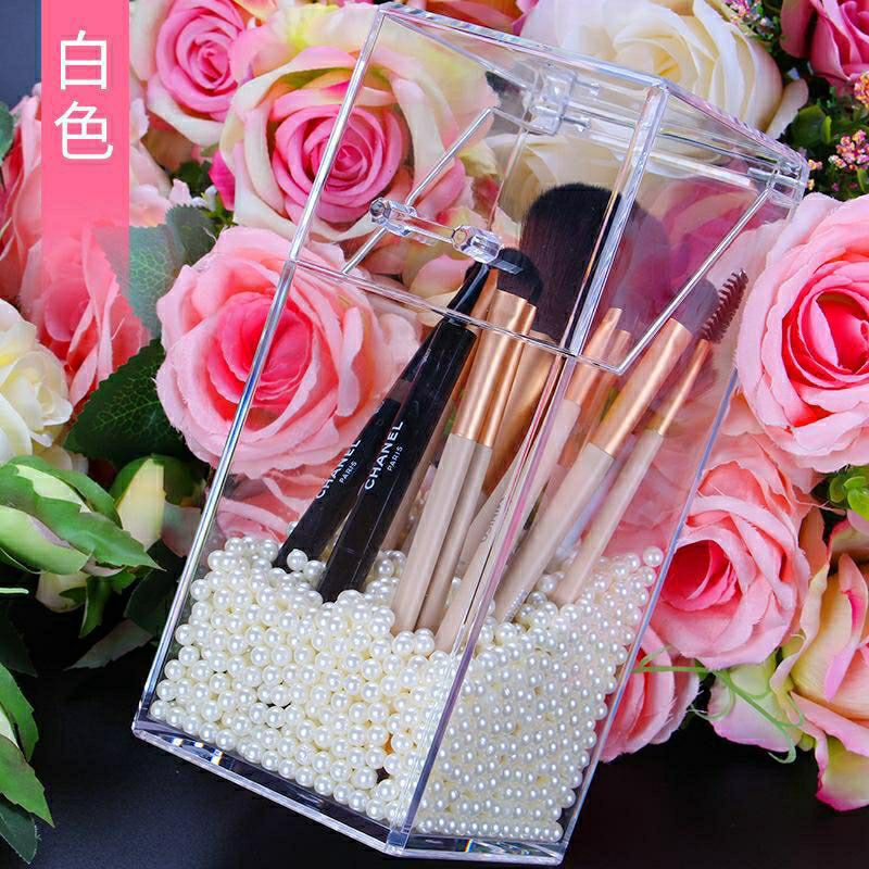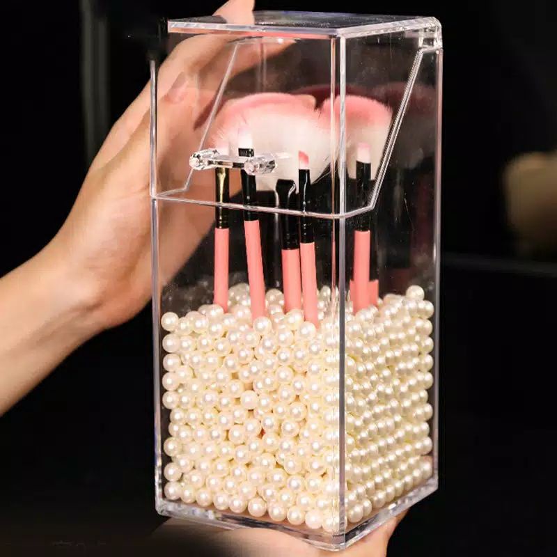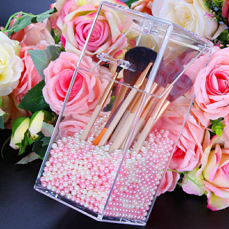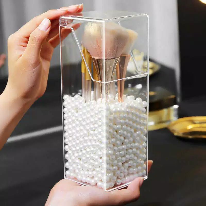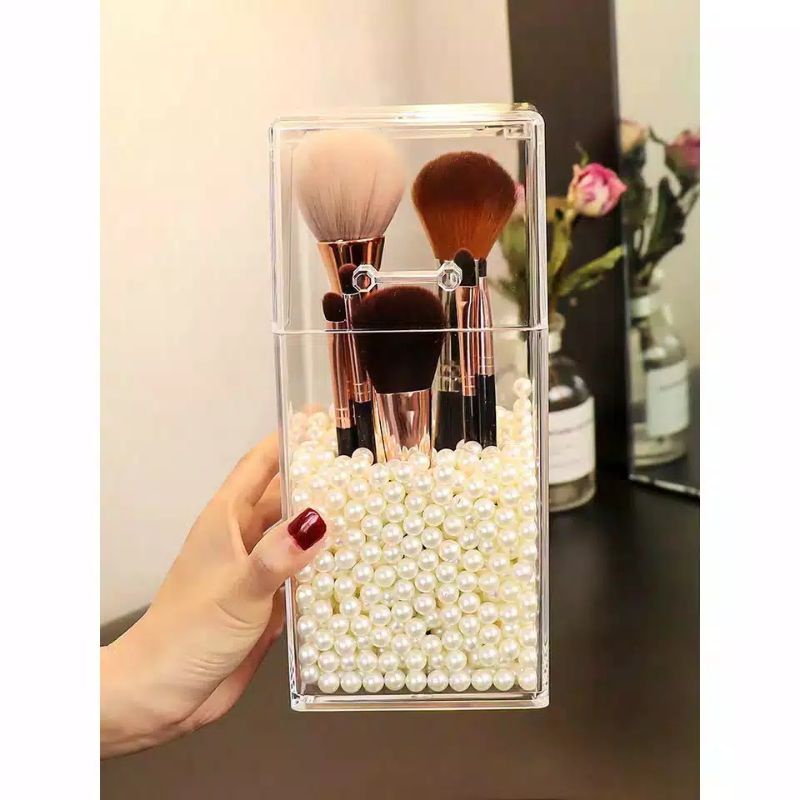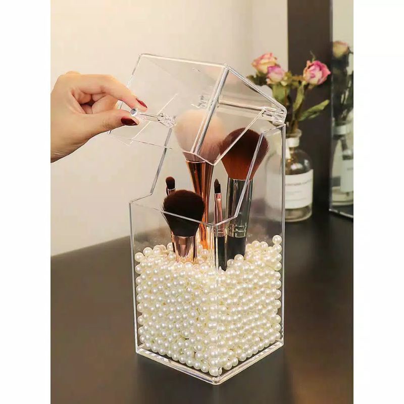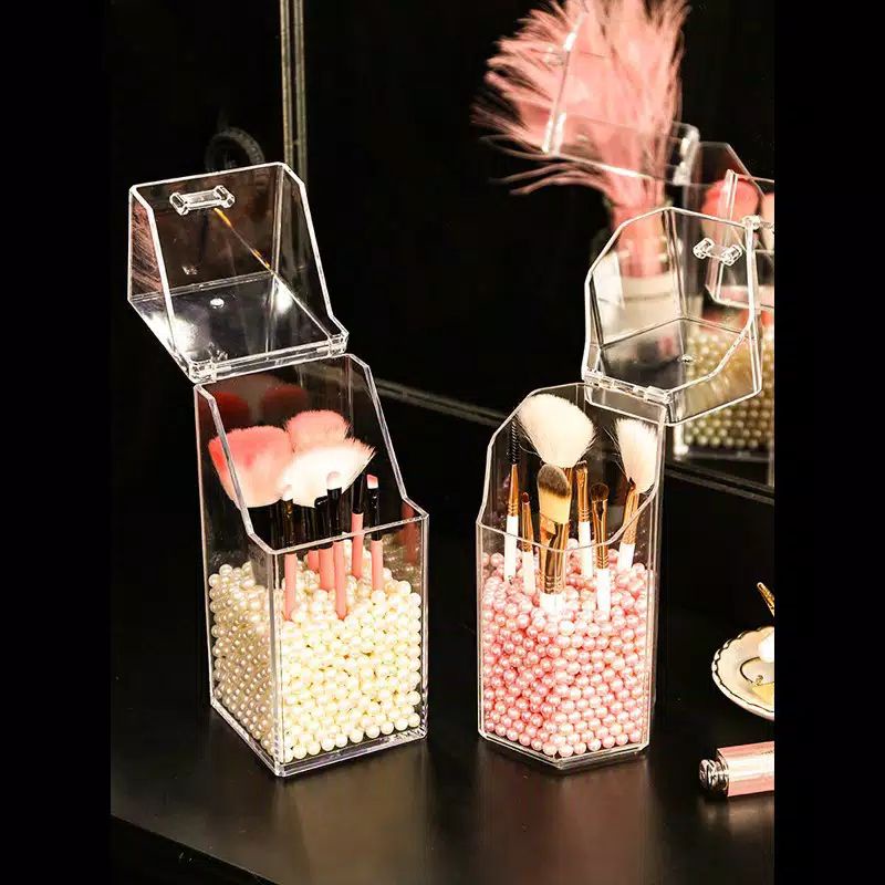 Rovelin - Kotak Brush Acrylic + Mutiara / Tempat Kuas Makeup Kosmetik Akrilik
