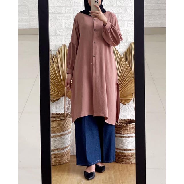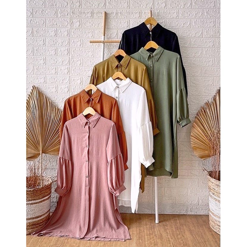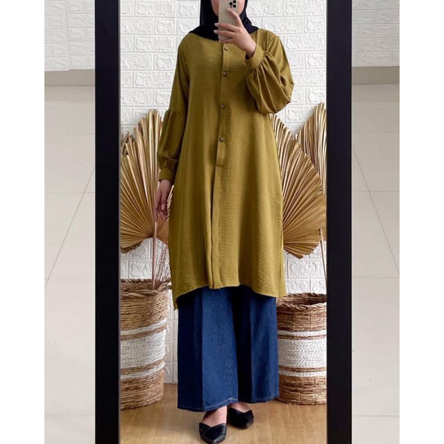 Tunik Bahan Crinkle / Others / Tunik Wanita Terbaru 2022 / Tunik Modern Simple Elegan / Tunik Crinkle Airflow / Tunik Terbaru Lebaran 2023 / Atasan Wanita Crinkle Terviral 2023 Full Kancing Busui Friendly Korea Style Elegan Murah Tapi Mewah