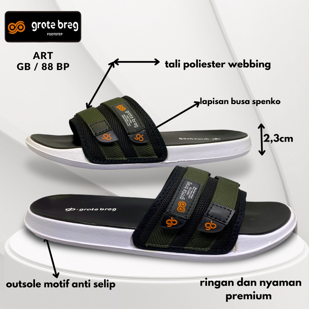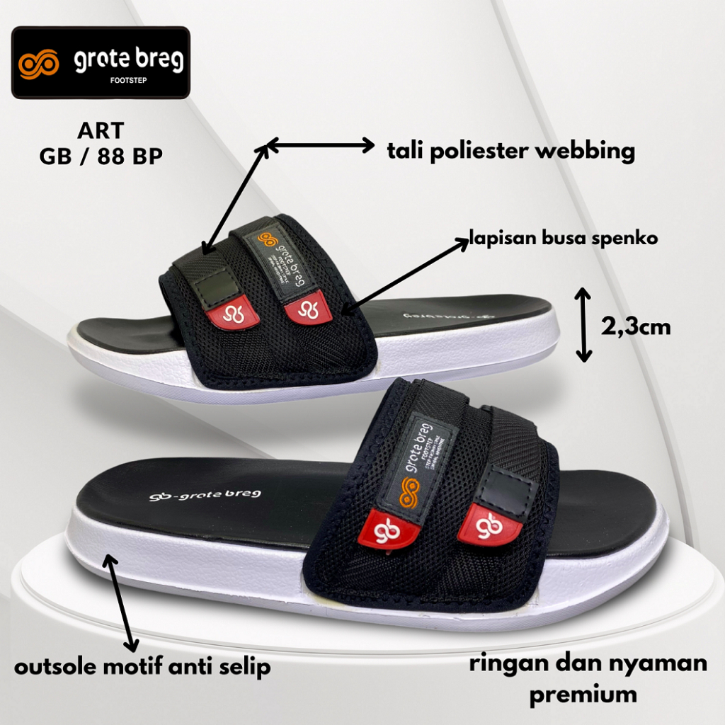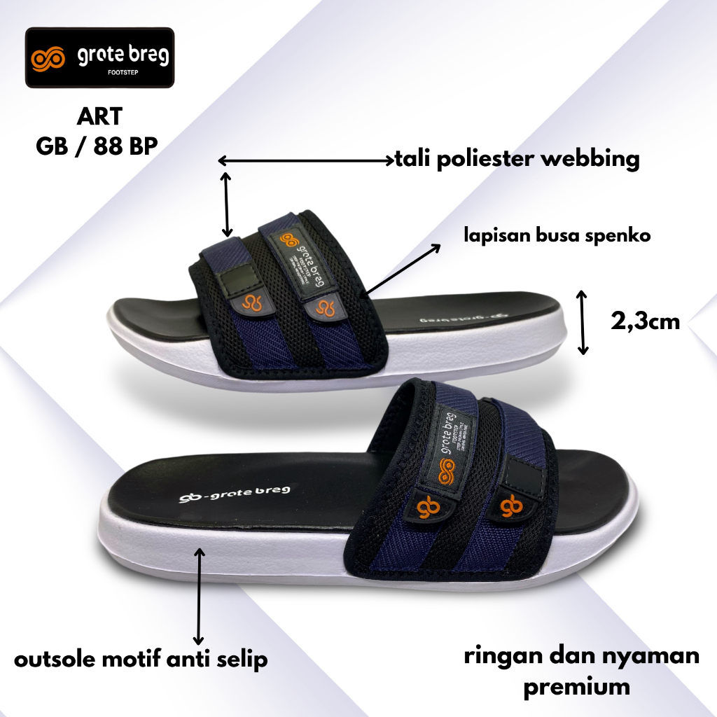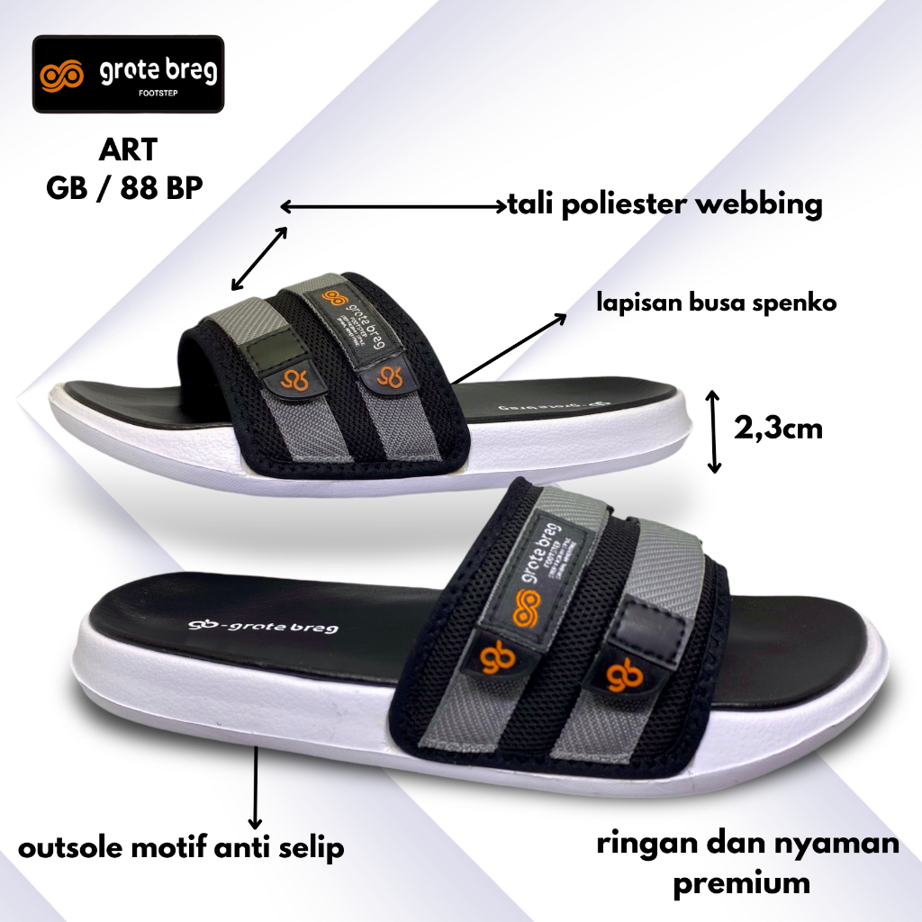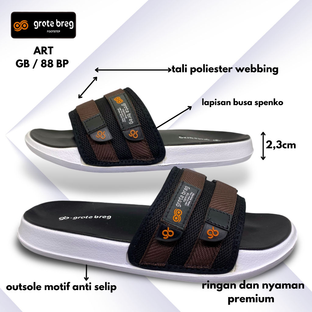 Sandal Slop Pria & Wanita Grote Breg GB 88 BP Sendal Slip On Karet Flat Original Terbaru