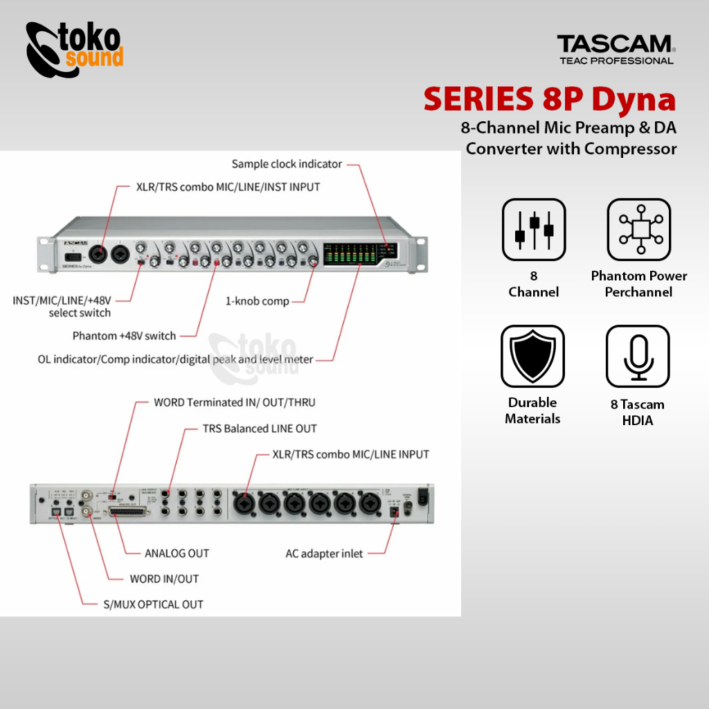 TASCAM Series 8P DYNA Microphone Preamp With Compressor