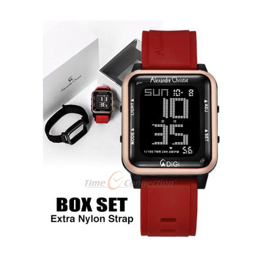Alexandre Christie AC 9344 MHRIPBARE Merah Rosegold Original / Jam Tangan Wanita Digital Karet / Red Rubber Watch MH RIPBARE