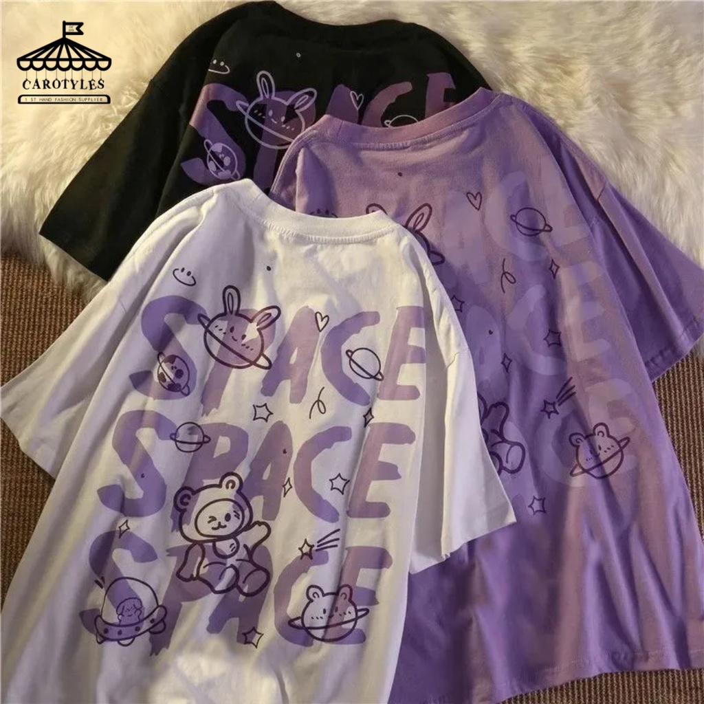 CAROTYLES Kaos Wanita Oversize Space Katun Lengan Pendek