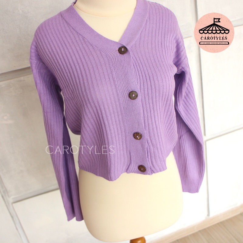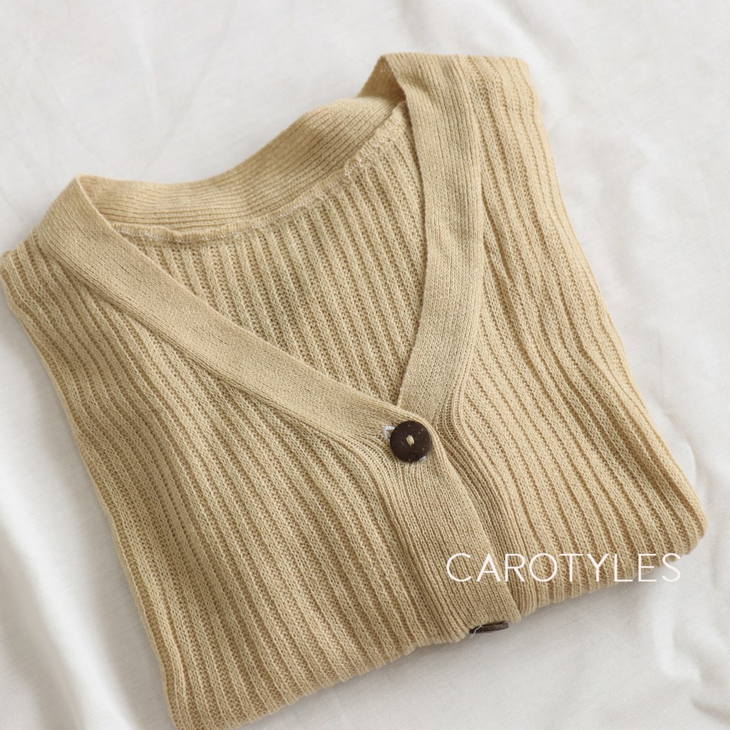 CAROTYLES Cardigan Crop Polos Rajut Wanita Lengan Panjang