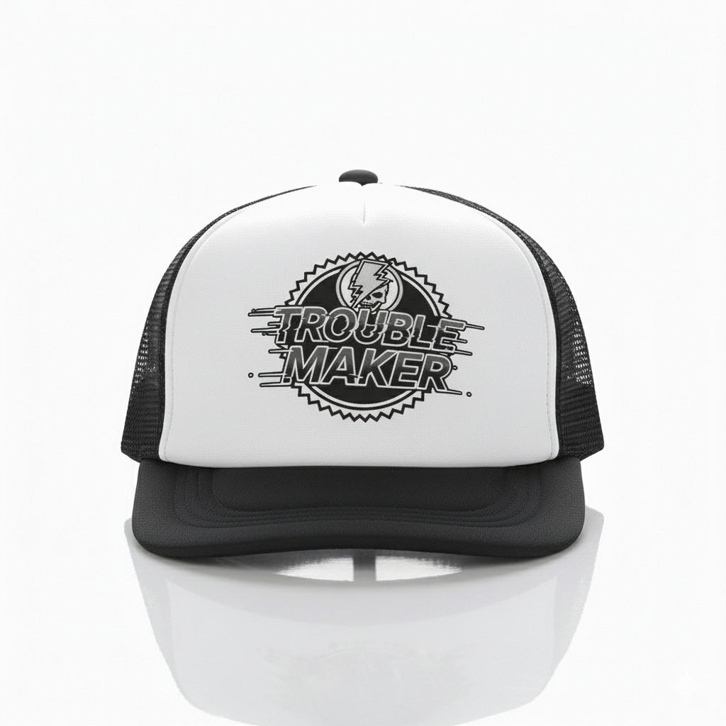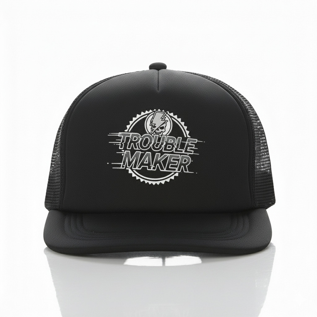 Topi Trucker Jaring Custom Logo "TROUBLE MAKER" Keren & Kekinian