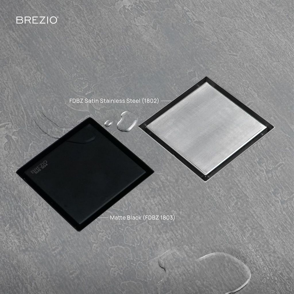 BREZIO STAINLESS FDBZ 18- STEEL SUS 304 FLOOR DRAIN (TILE INSERT) HITAM BLACK SILVER CHROME