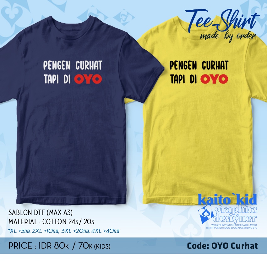 Kaos Kata PENGEN CURHAT TAPI DI OYO Kata Nasehat Lucu meme bisa custom tulisan
