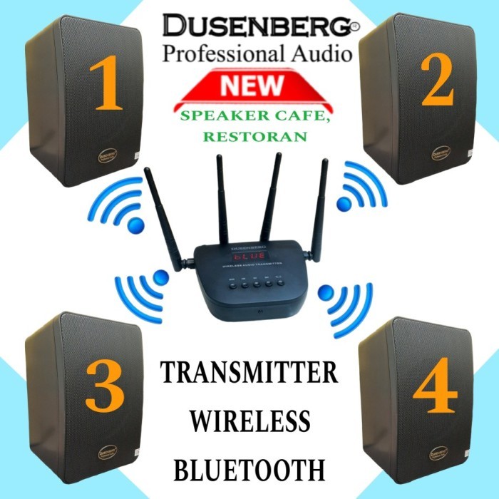Paket Sound Cafe, Premium Speaker smart Wireless DUSENBERG 4 Titik Speaker Wireless, 1 Transmitter