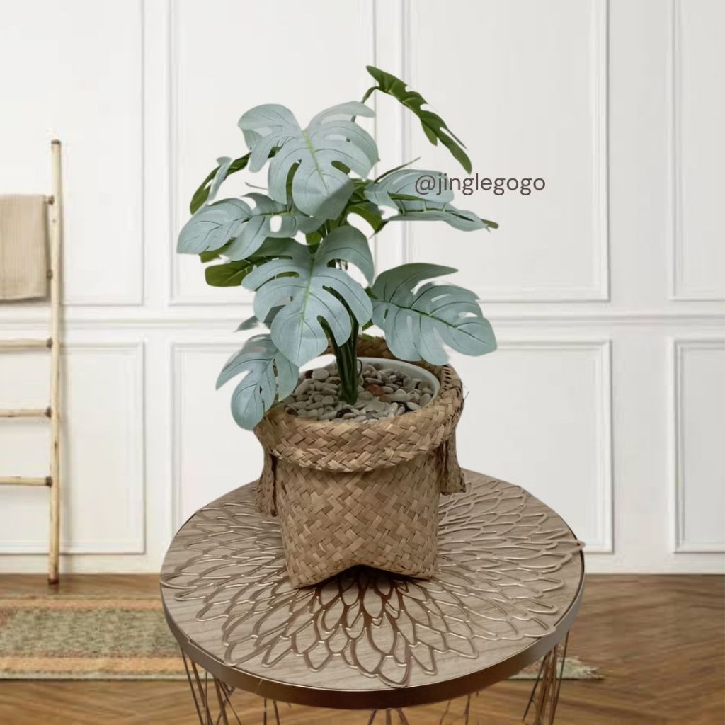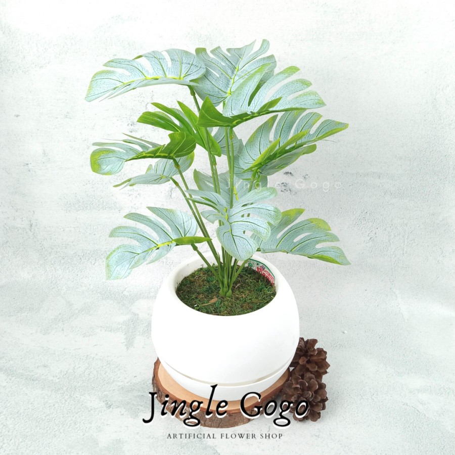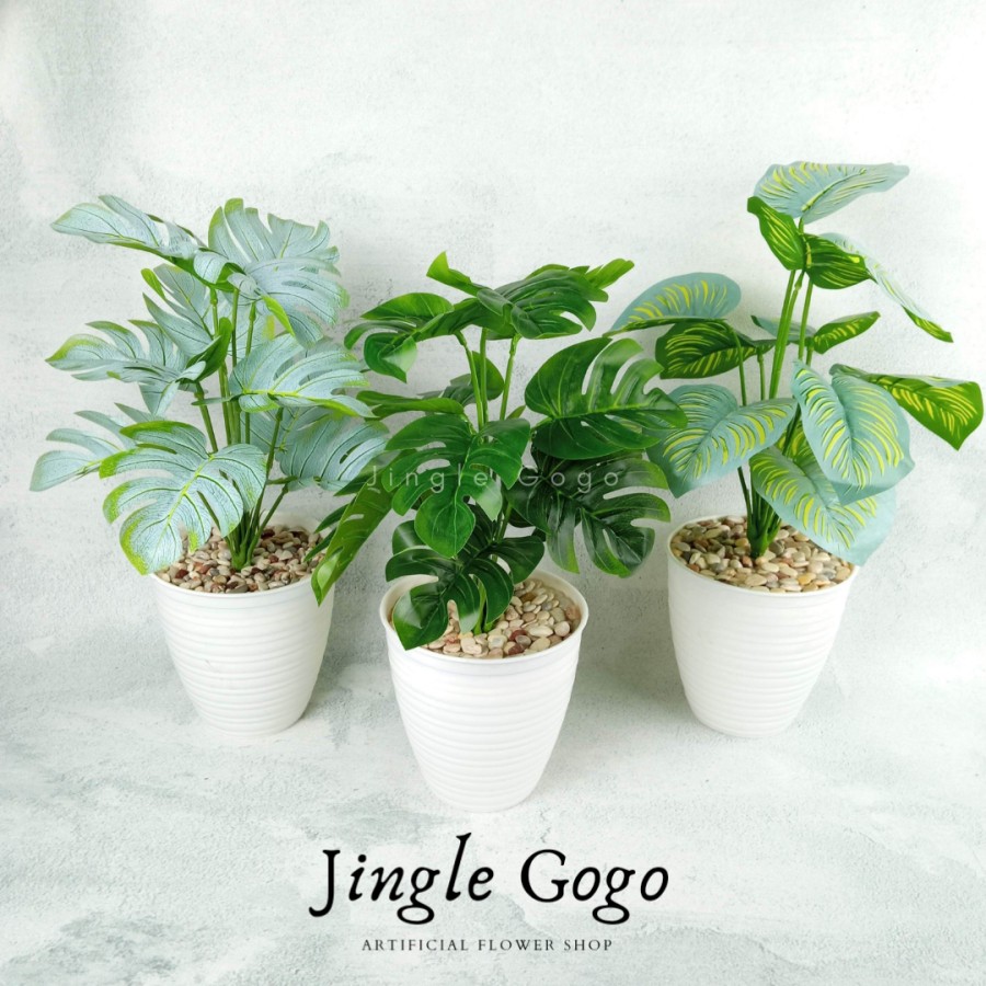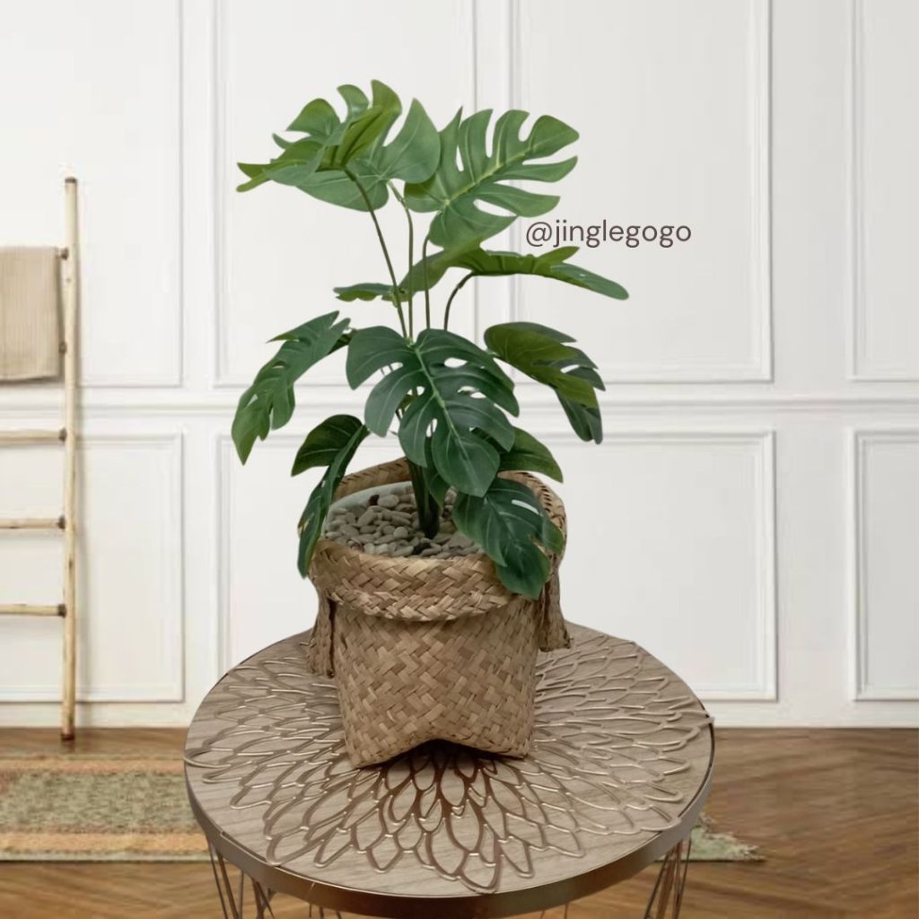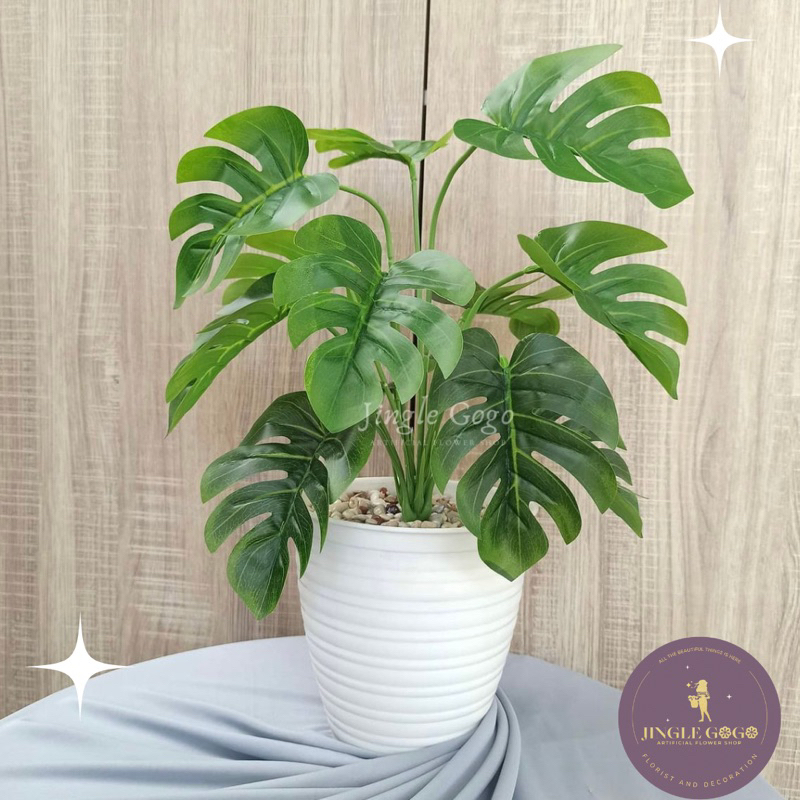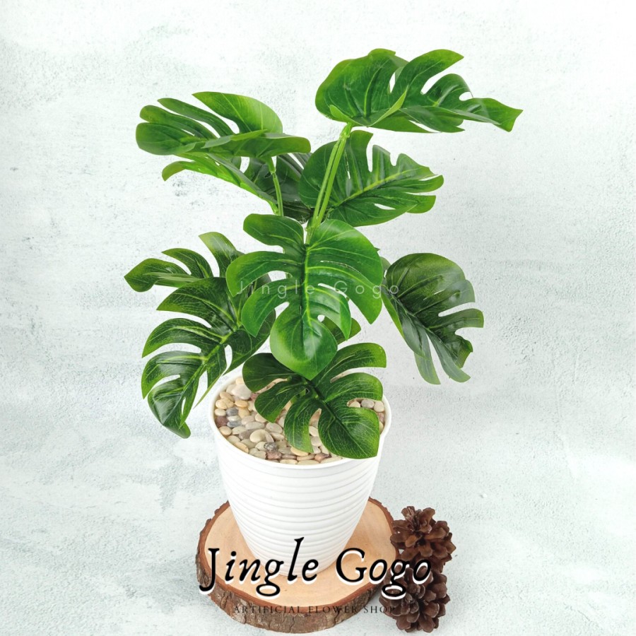 Daun Plastik Monstera Rimbun (TERMASUK POT) Hiasan Meja Tanaman Hias Artificial Dekorasi Rumah B478