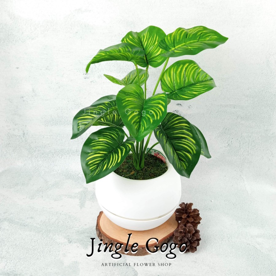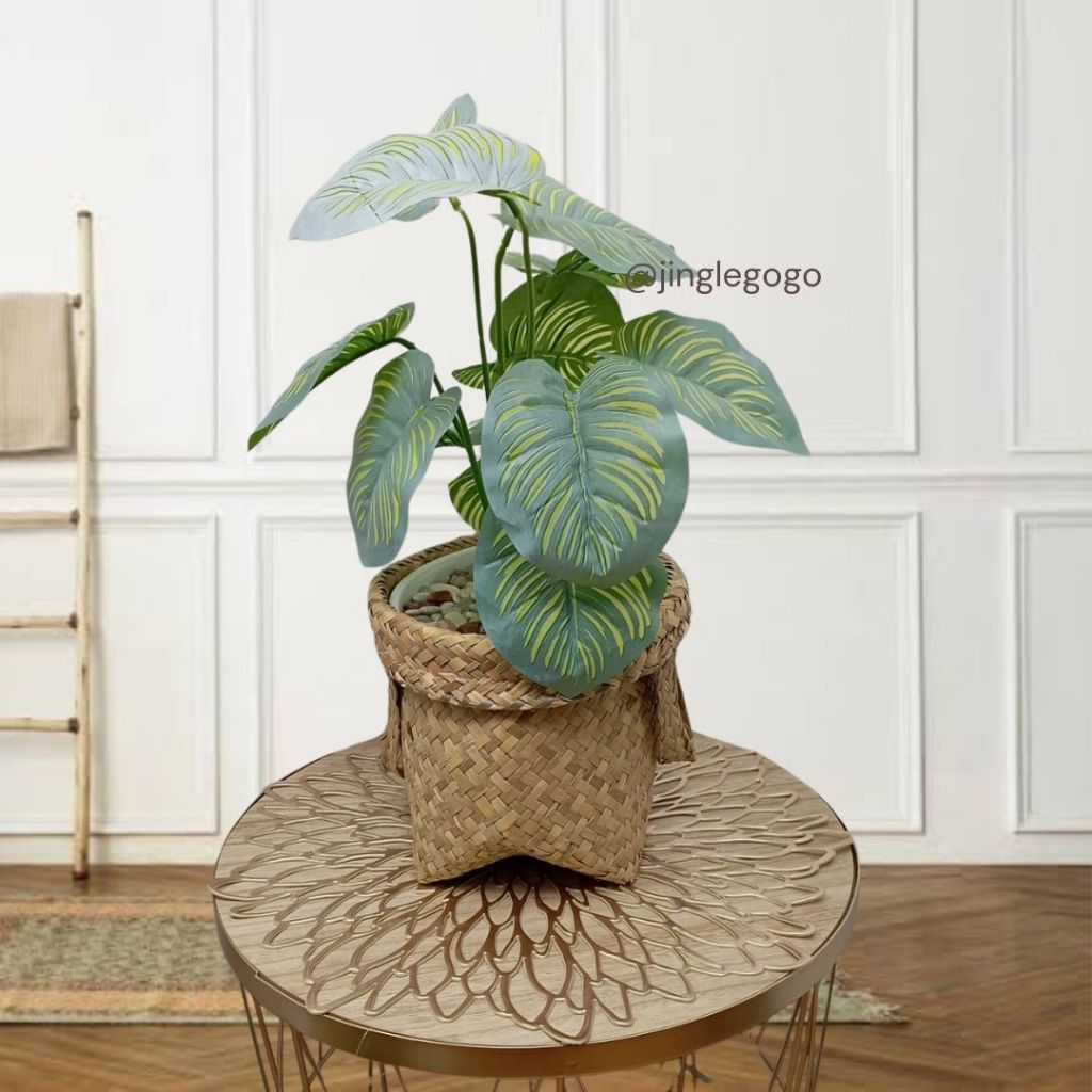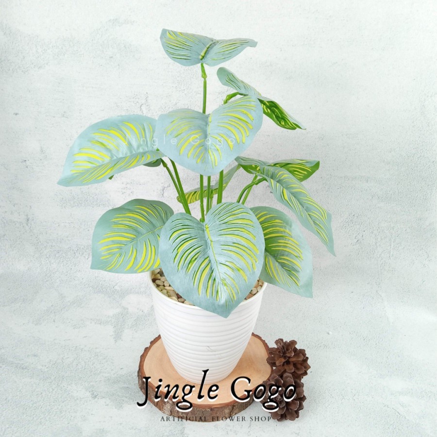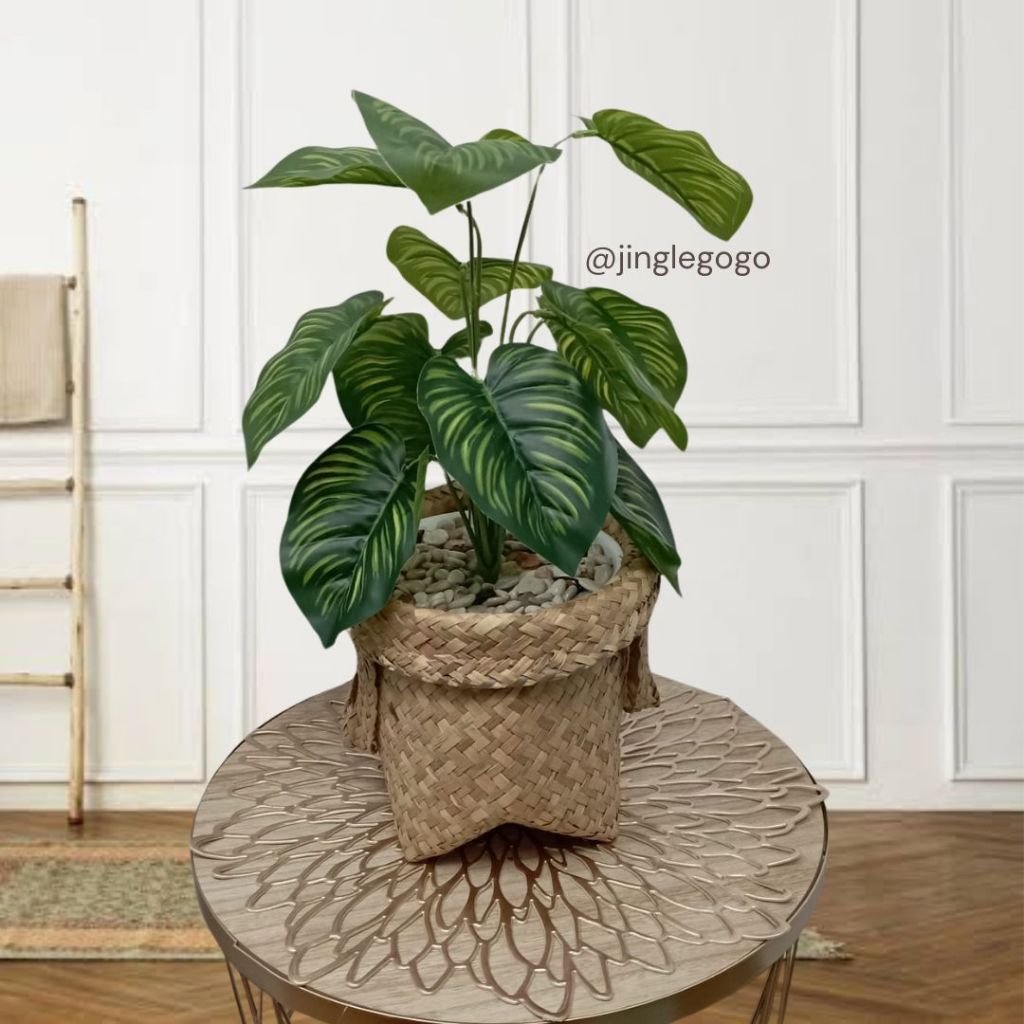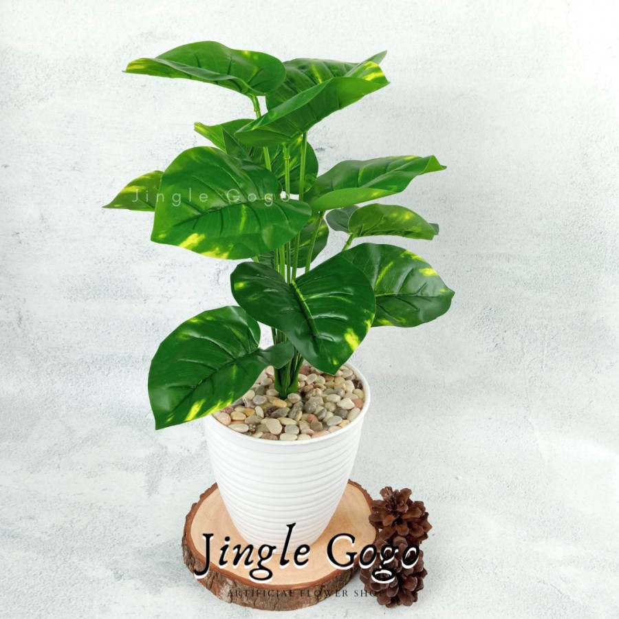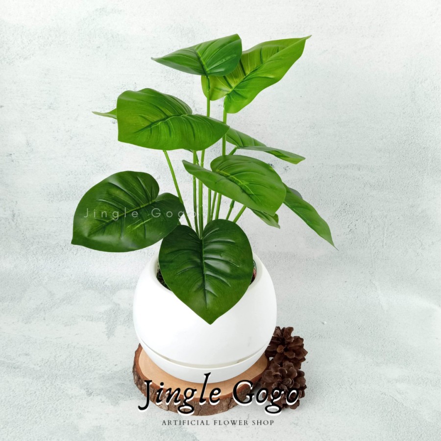 Daun Plastik Monstera Rimbun (TERMASUK POT) Hiasan Meja Tanaman Hias Artificial Dekorasi Rumah B478