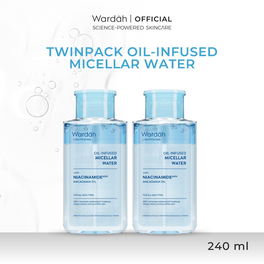 [TWINPACK] WARDAH Micellar Water 240 ml (Perfect Bright, Nature Daily, Lightening Oil, Acnederm) - Pembersih Make Up Waterproof Tanpa Bilas - Skincare