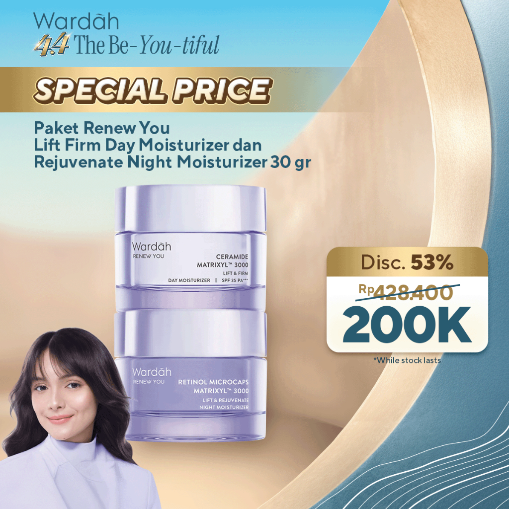 WARDAH Paket 2pcs Renew You - Lift Firm Day Moisturizer dan Rejuvenate Night Moisturizer 30gr - Skin Renewal, Membantu Melembabkan Kulit, Menyamarkan Kerutan dan Garis Halus, Mengencangkan Kulit, Meratakan Warna Kulit, Menyamarkan Bekas Jerawat - Skincare