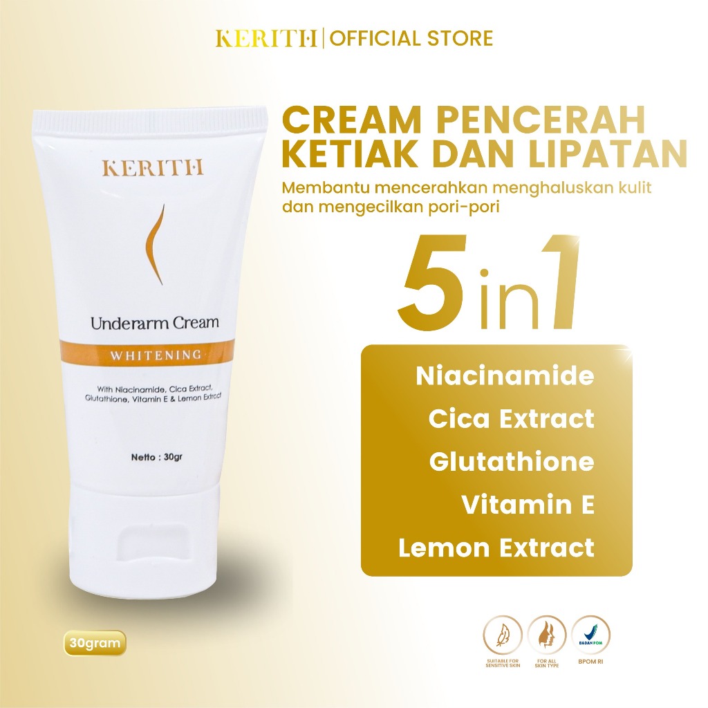 KERITH Underarm Cream 30gr Cream Mencerahkan Memutihkan Pemutih Ketiak Selangkangan Leher Pantat Area Gelap