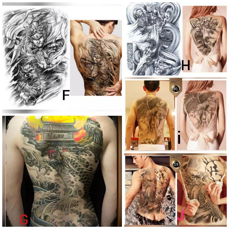 tato punggung penuh temporer pria 48*34cm tattoo temporary back chest