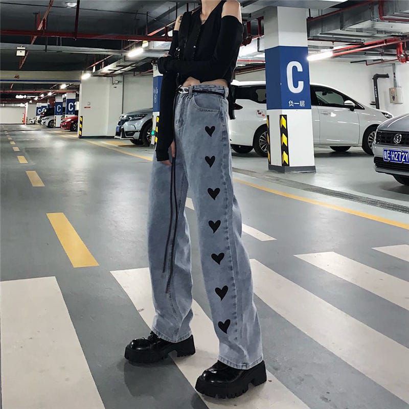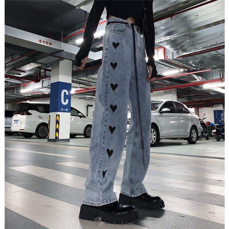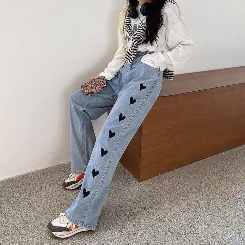 KULOT WANITA TERBARU 2021-CELANA HIGHWAIST-CELANA WANITA KOREA-CELANA JEANS MOTIF LOVE-BTS ARMY-JEANS KOREA