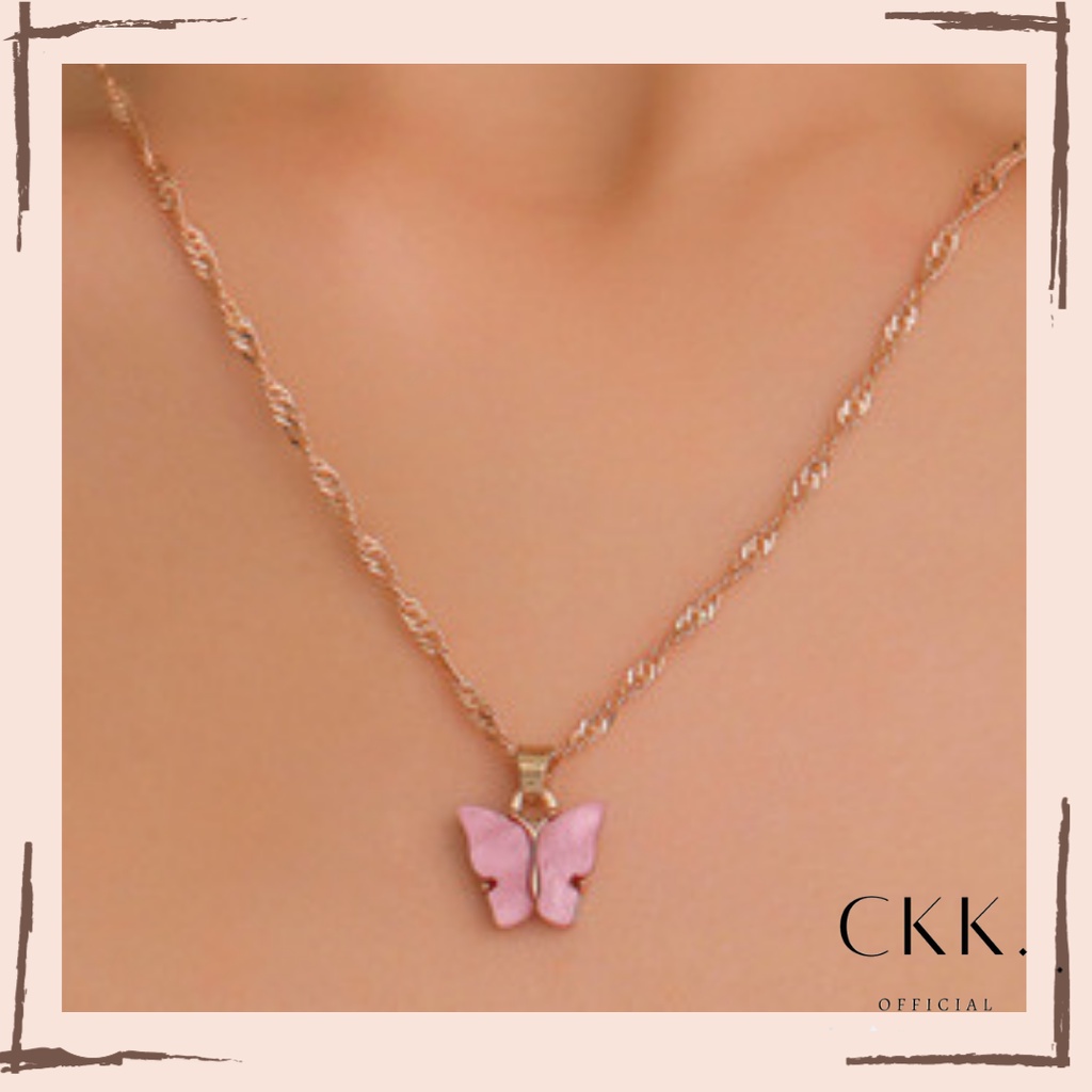 ~ CKK ~ Kalung wanita korea Kupu-kupu Manis Warna Akrilik Kalung Fashion rantai aesthetic Liar
