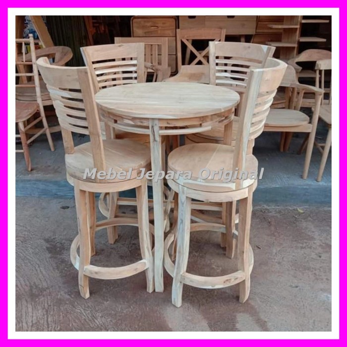 Meja makan Cafe Kursi putar Jati - Mini Bar Meja 4 Kursi Putar Jati Original