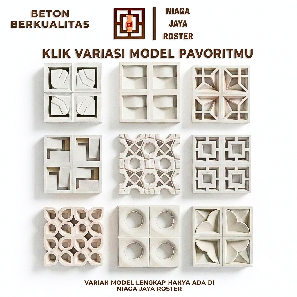NIAGA JAYA ROSTER - Roster Beton Minimalis, Model Best Seller Lengkap, Ukuran 20x20cm, | Loster Putih | Ventilasi Udara, Original