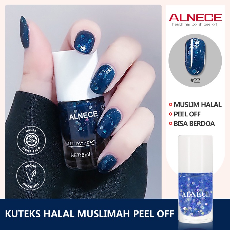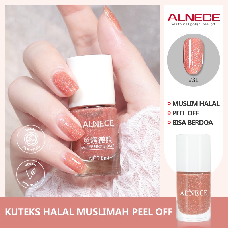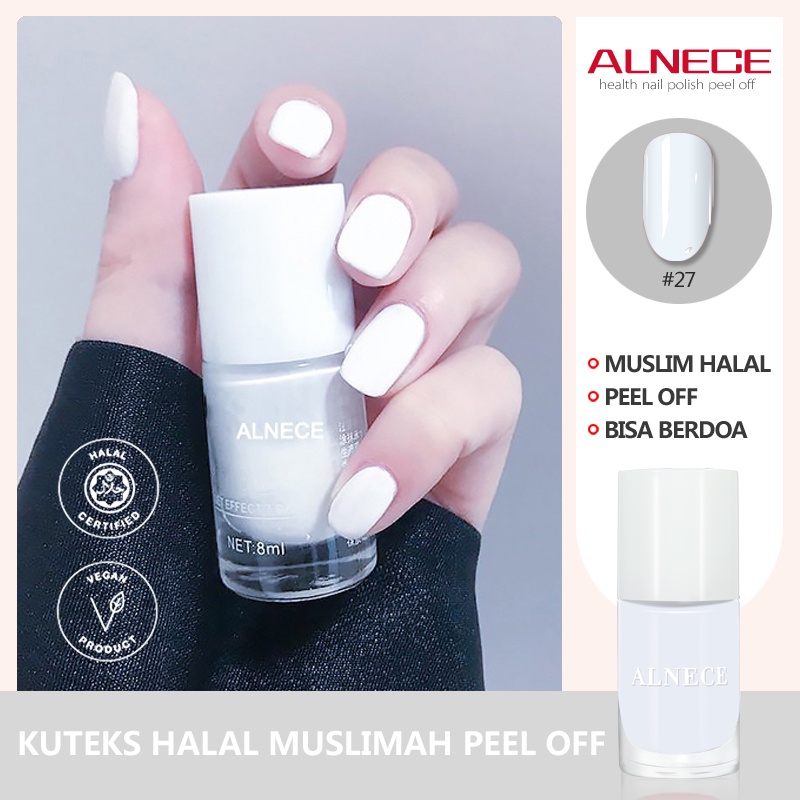 ALNECE 27 warna Bisa Di Kupas Kutek Halal Muslimah Kutek Peel Off Bisa Untuk Sholat Cat Kuku 8ml