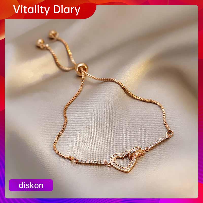 【COD❤️】Gelang Anti Karat Dan Tidak Luntur Ori Emas Dengan Liontin Bentuk Hati Berlian Selamanya Korea Aesthetic Gelang Titanium Untuk Wanita Pacar Pasangan VDY