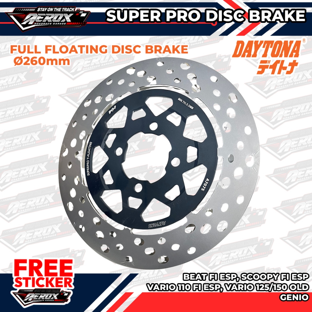Cakram Racing Daytona Superpro T-Floating Race Daytona BLACK , Beat, Beat Fi / ESP, Genio, Vario Fi / ESP 260MM #5499