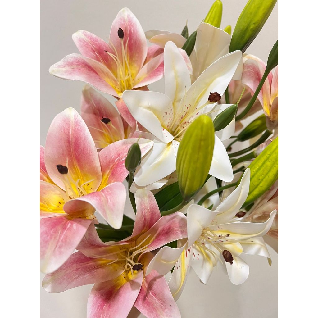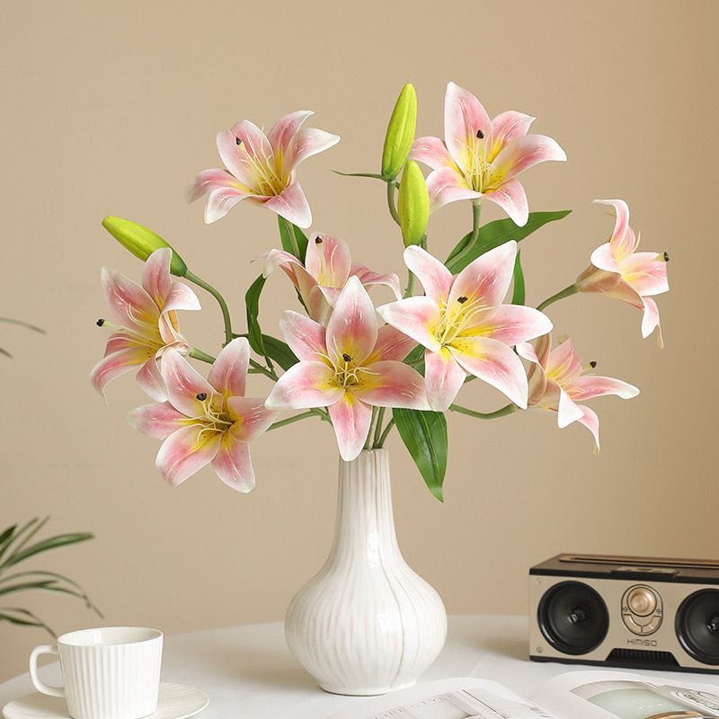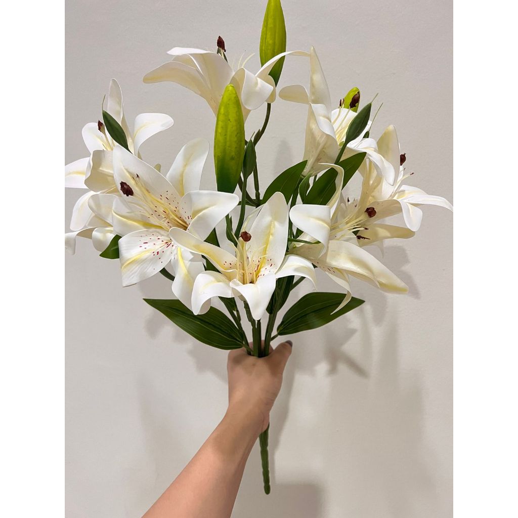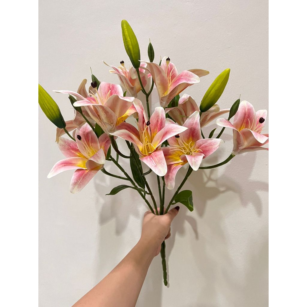Premium Artificial Lily Cab 5 dan Cab 9 / Bunga Palsu Plastik Dekorasi Tanaman Hias Ruang Tamu Meja